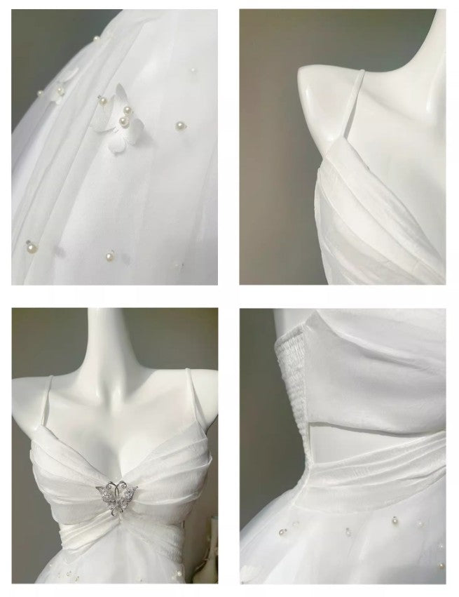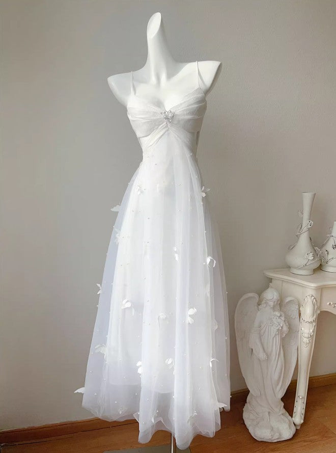 Fairytale Pearl Butterfly Tulle White French A-Line Spaghetti Straps Birthday Dresses ED02242
