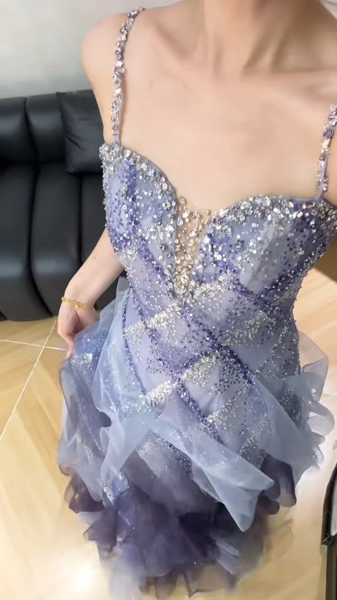 Fairytale Spaghetti Straps Sequins Tulle A-Line Long Prom Dresses Sweet 16 Evening Gowns ED02222