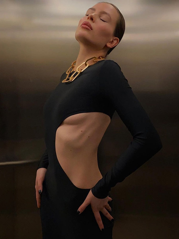 Fall Party Dresses For Women Sexy Black Cut Out Round Neck Long Dress Women Elegant Long Sleeve Club Party Spring Dresses Skinny Clothes