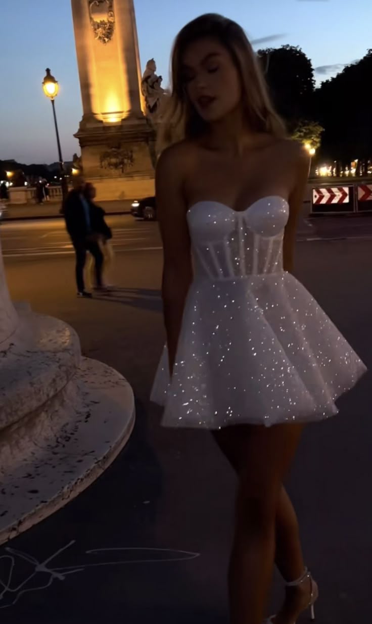 Fancy Short Hoco Dresses A line Sweetheart Mini Formal 8th Grade Homecoming Dresses Summer Middle School White Sequin Homecoming Outfits DH45