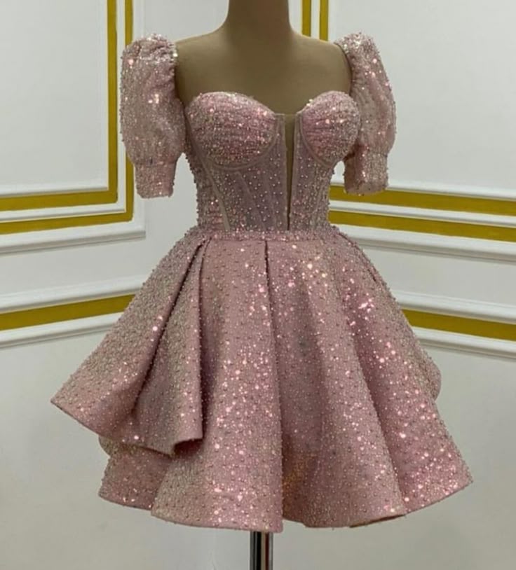 Fancy Short Hoco Dresses A line Sweetheart Pink Sequin Mini Formal 8th Grade Homecoming Dresses Summer Middle School Homecoming Outfits DH46