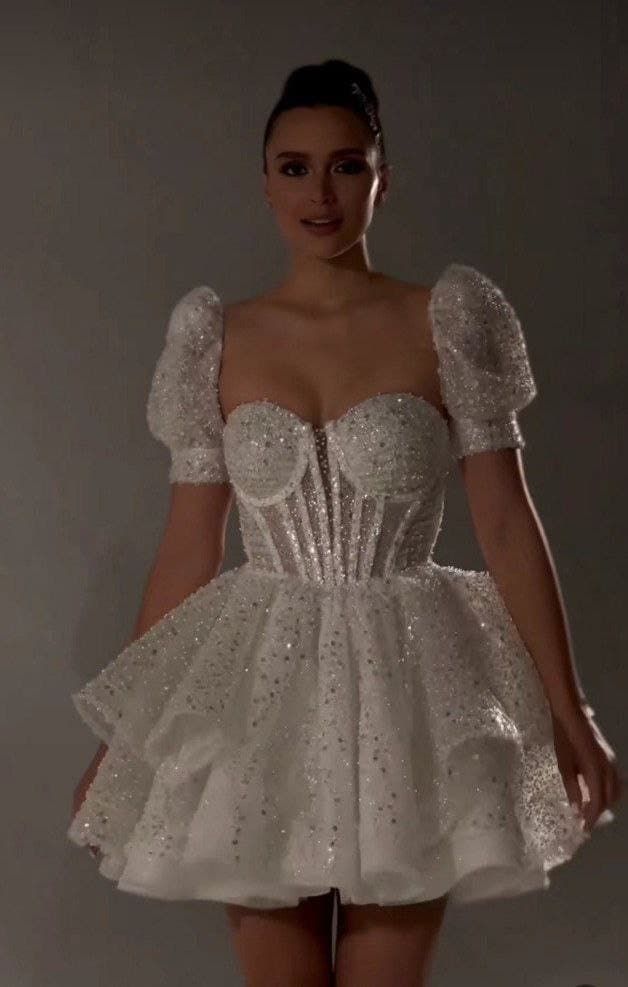 Fancy Short Hoco Dresses A line Sweetheart White Sequin Mini Formal 8th Grade Homecoming Dresses Summer Middle School Homecoming Outfits DH47