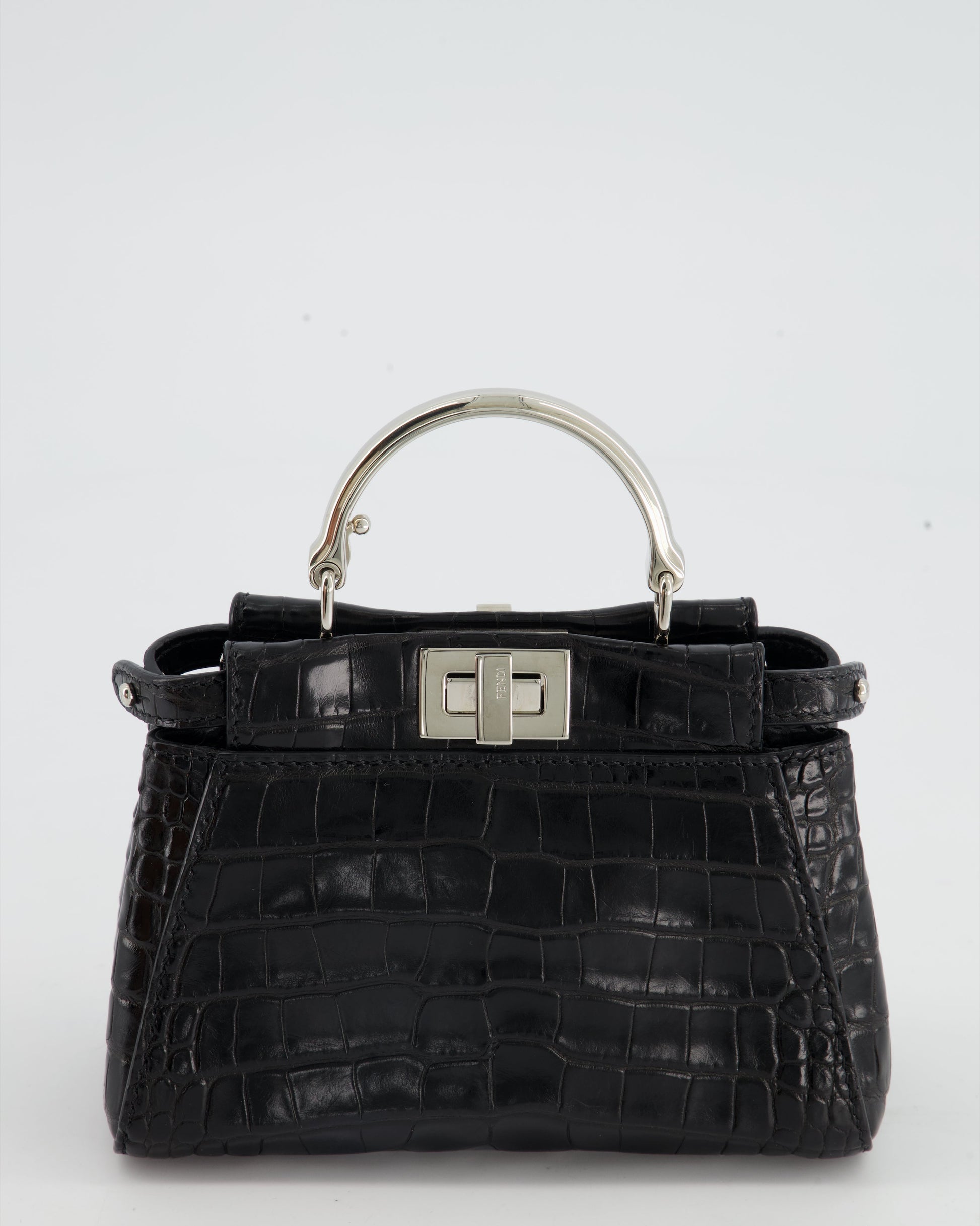 *FIRE PRICE* Fendi Black Exotic Micro Mini Peekaboo Bag with Silver Hardware
