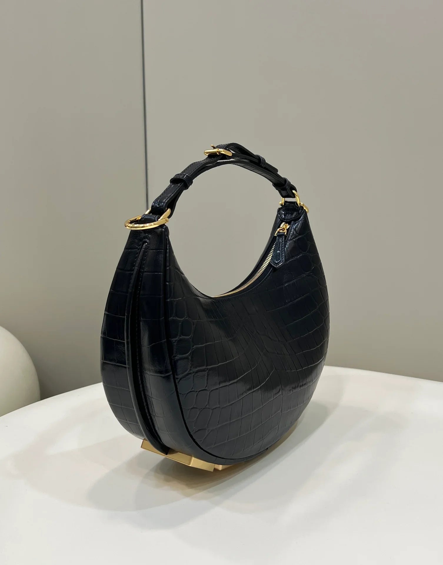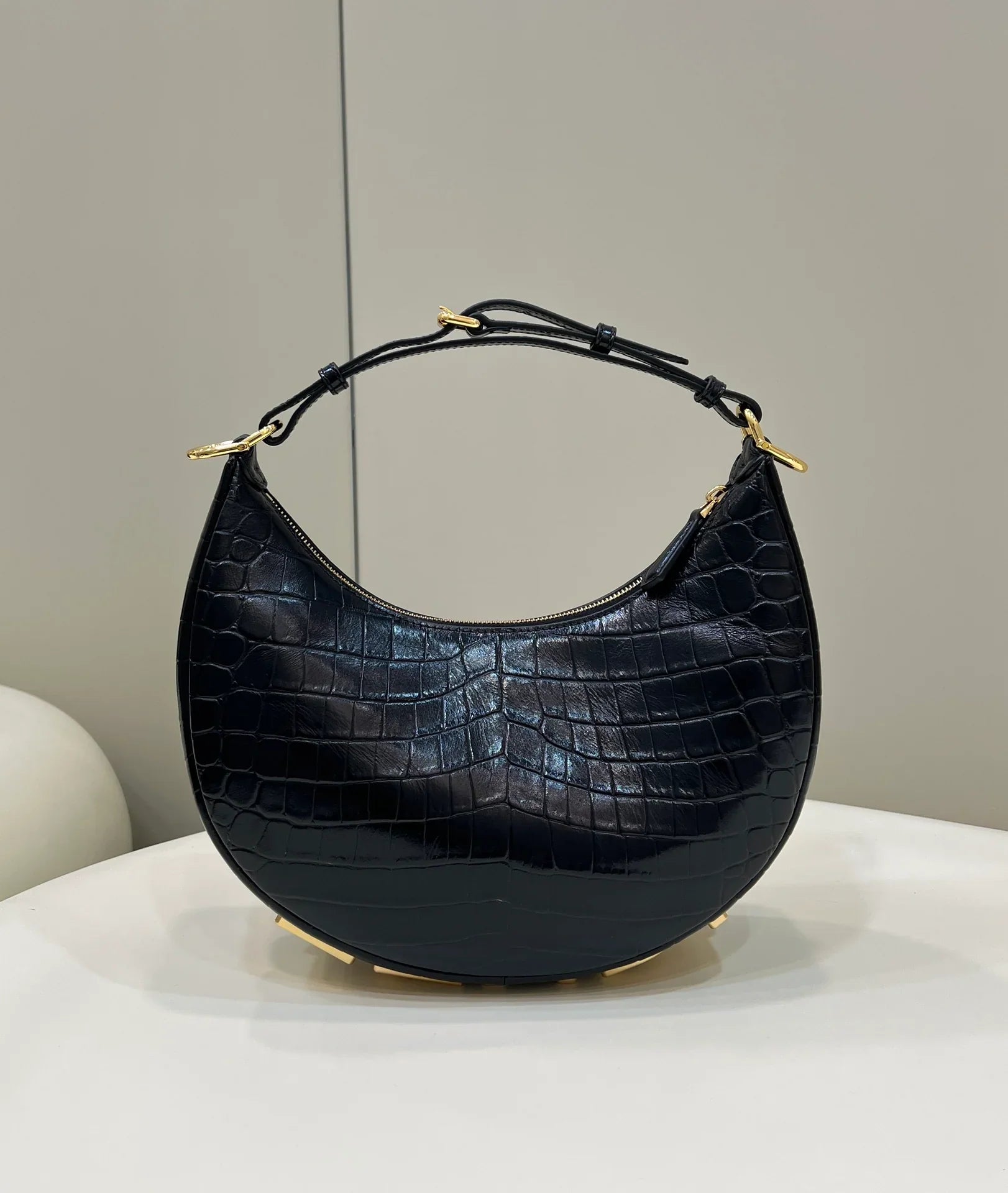 Fendi Small Graphy In Black Crocodile Leather - 10×29×24.5cm