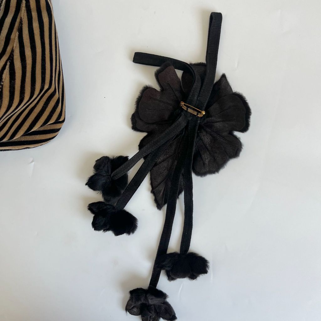 Fendi striped velvet FF flap shoulder vintage bag with floral applique, canvas lined interior with one zip pocket