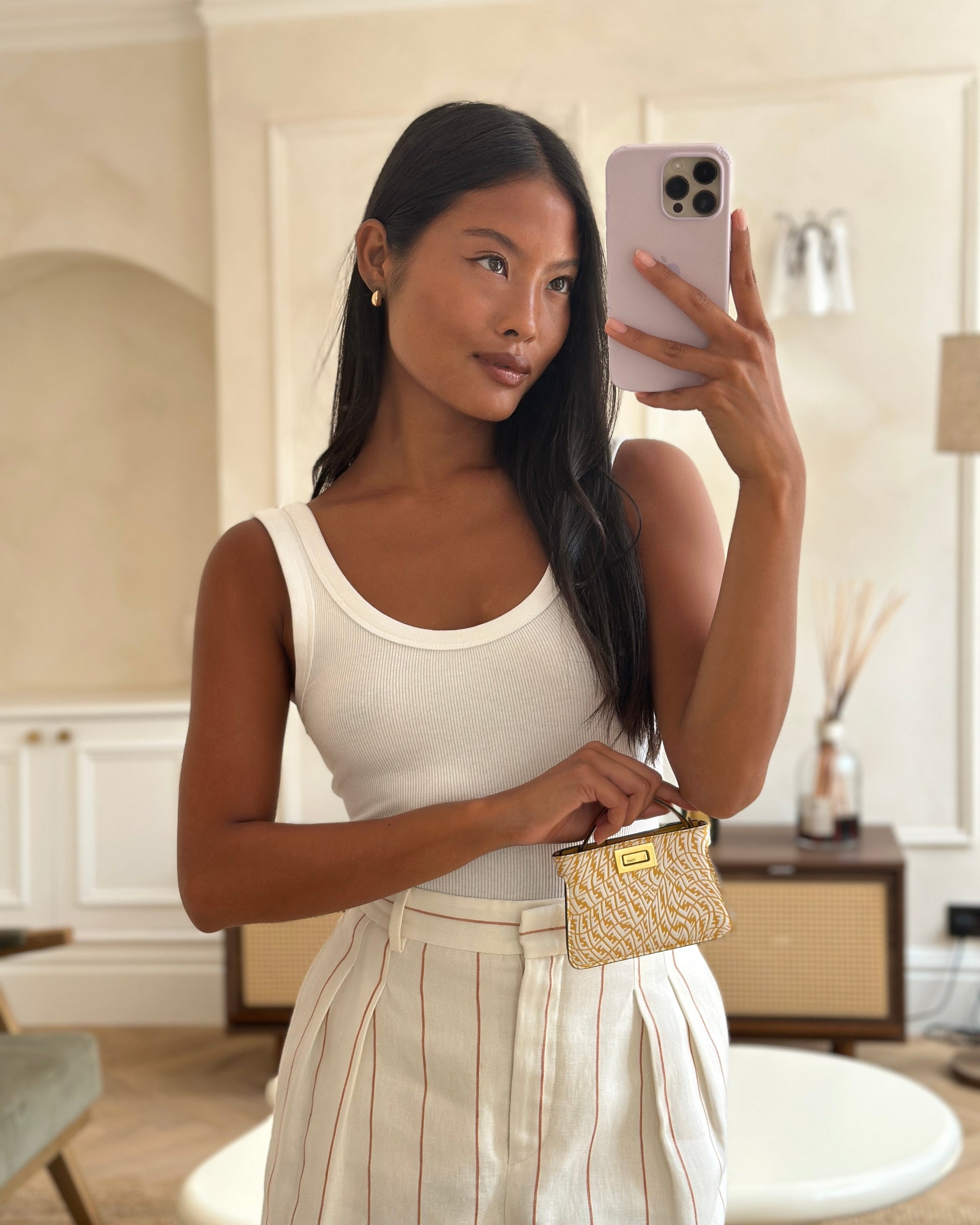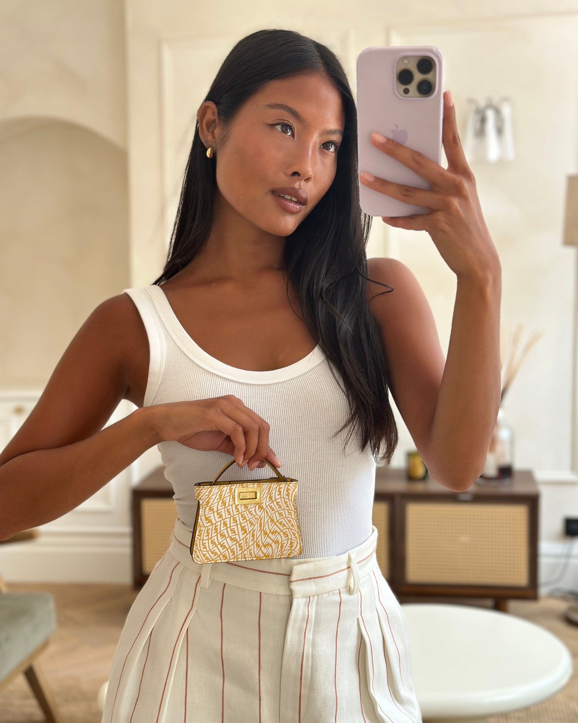 Fendi x Sarah Coleman Yellow Nano Peekaboo Bag with Gold Chain Strap
