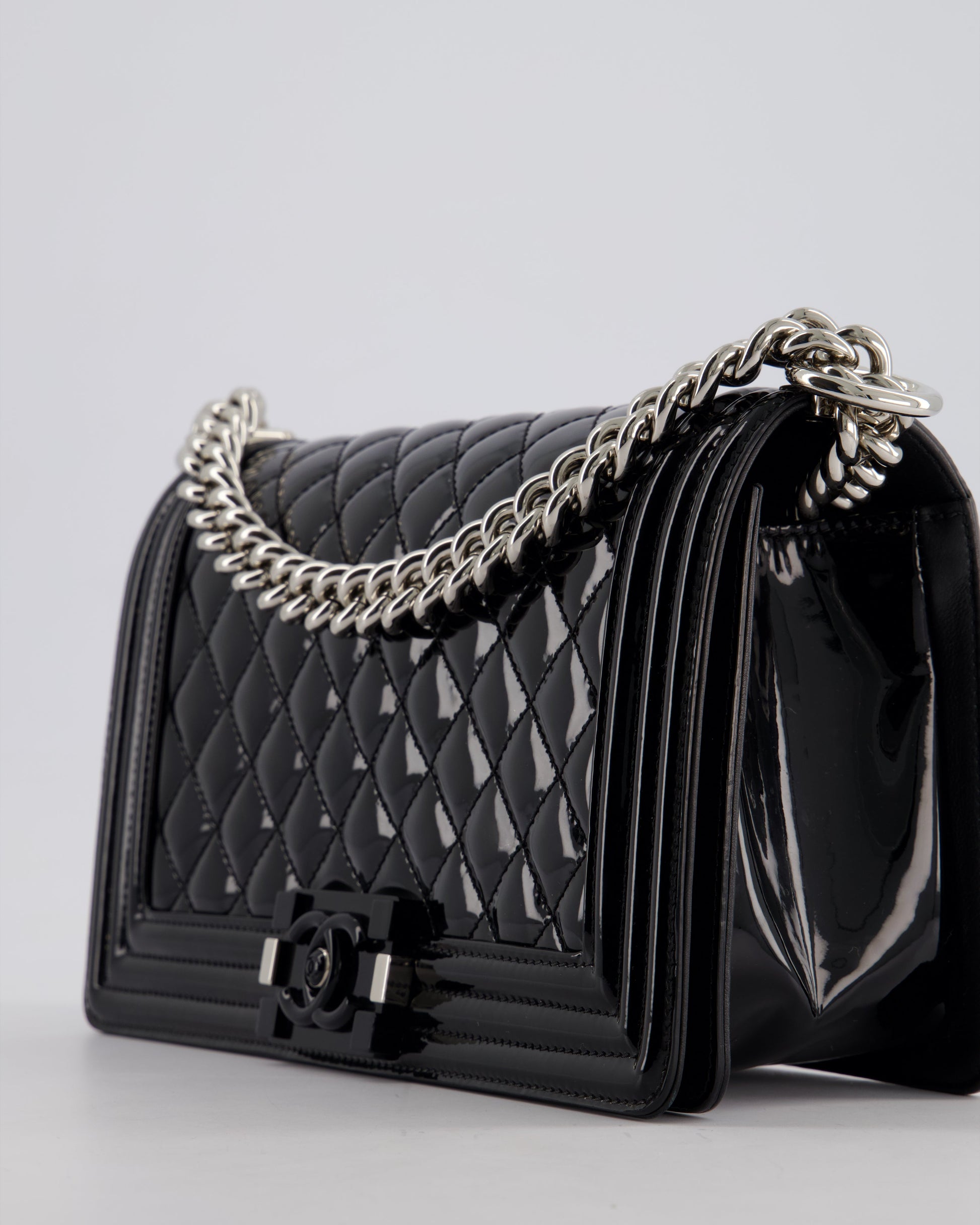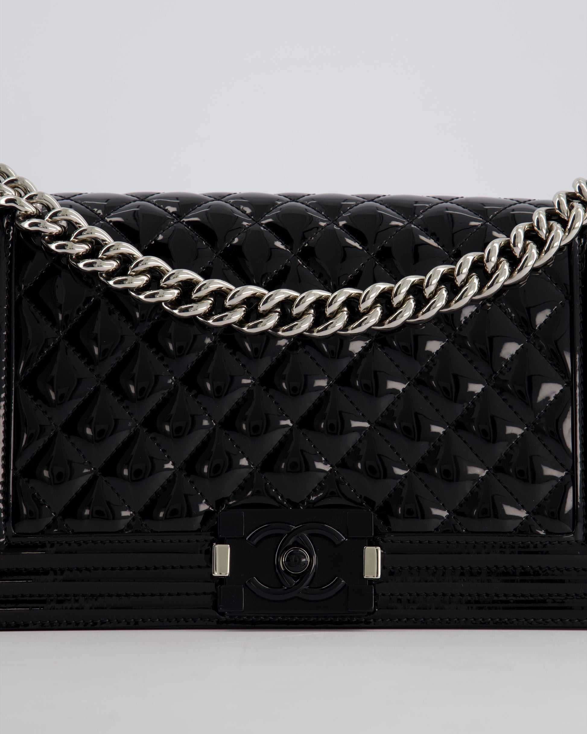 *FIRE PRICE* Chanel Black Patent Medium Boy Bag with Black and Silver Hardware