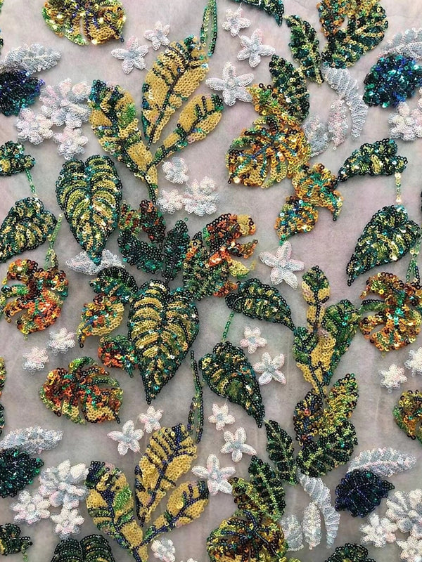 Floral Leaf Ruffle Embroidery Mother of the Bride Dress