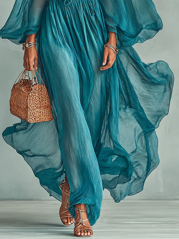 Flowing Cotton and Linen Trumpet Sleeves Women's Dress