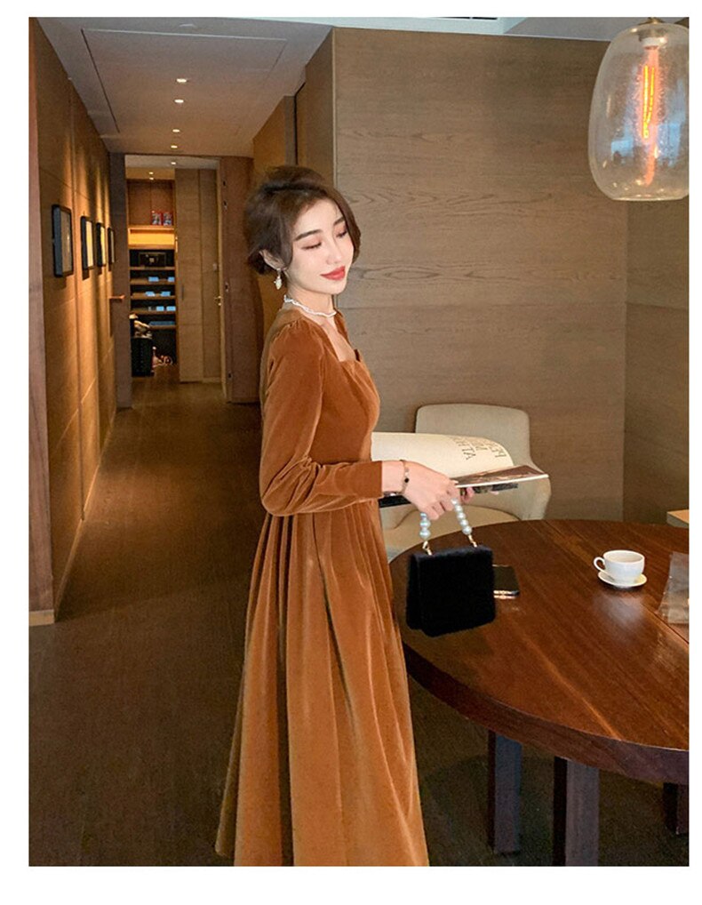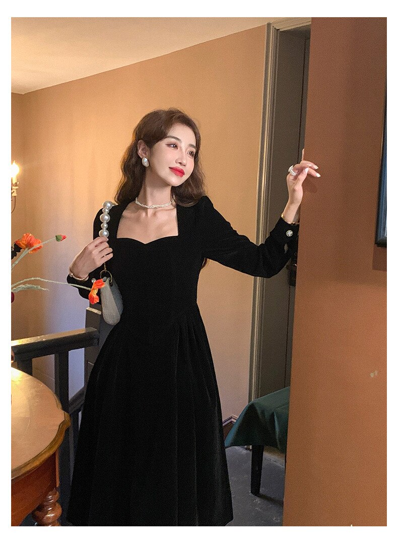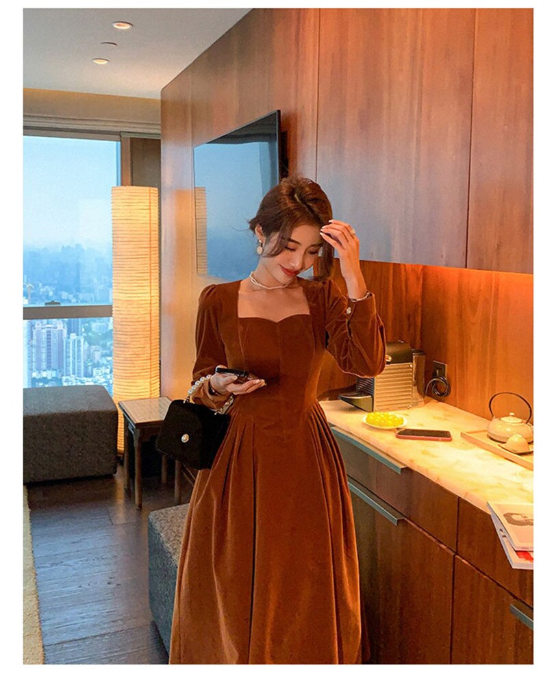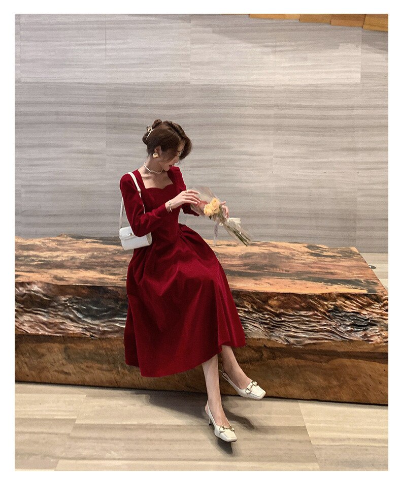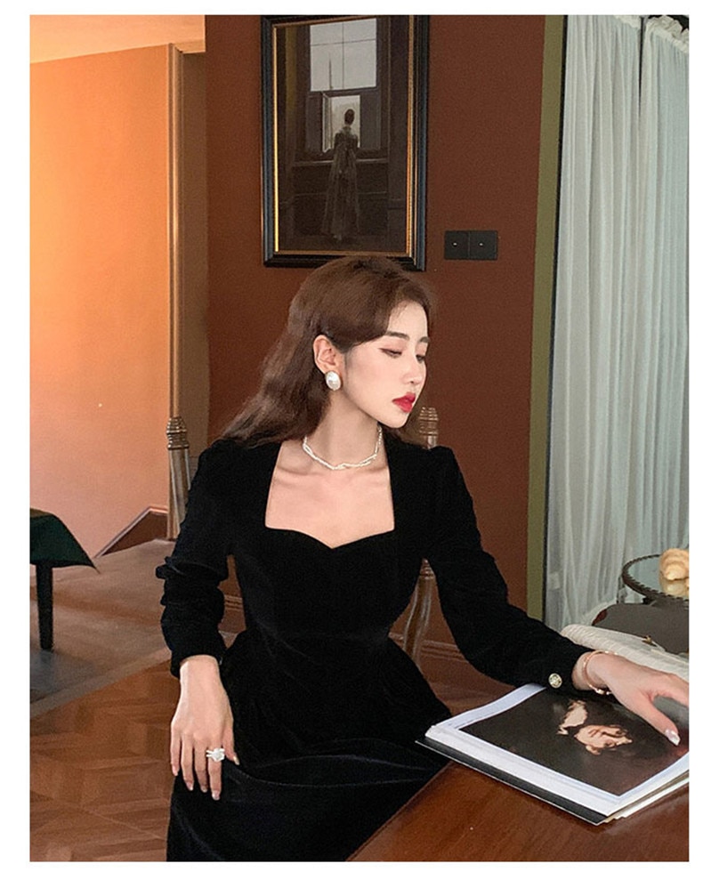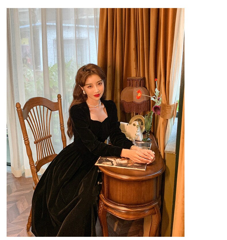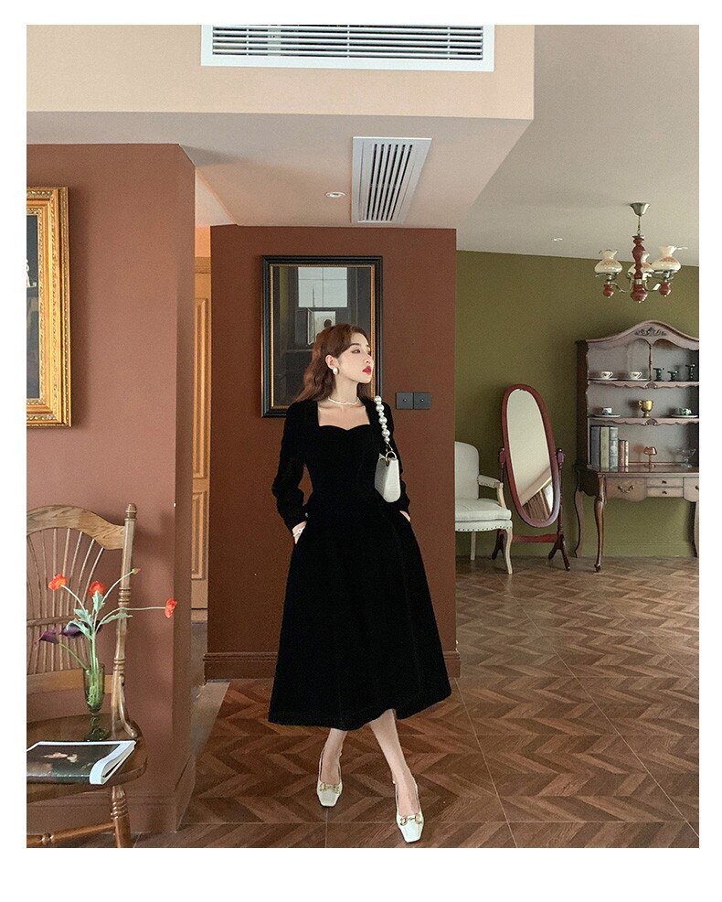 loveedsTM- France Vintage Dress Women Autumn Winter Solid Retro Elegant Evening Party Midi Dress Long Slevee Korean Style Dress Fairy