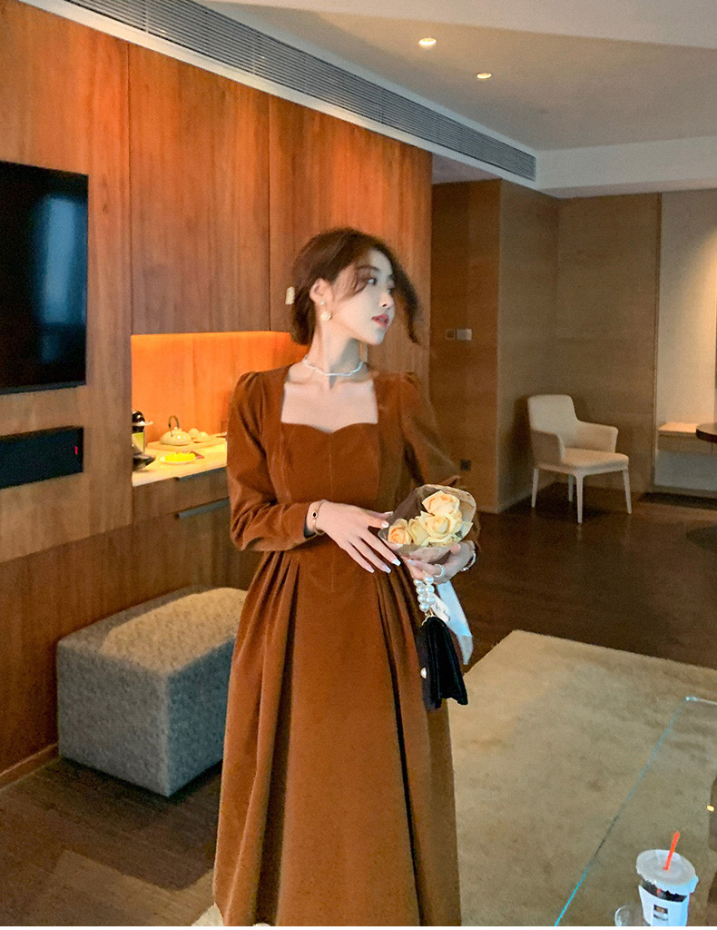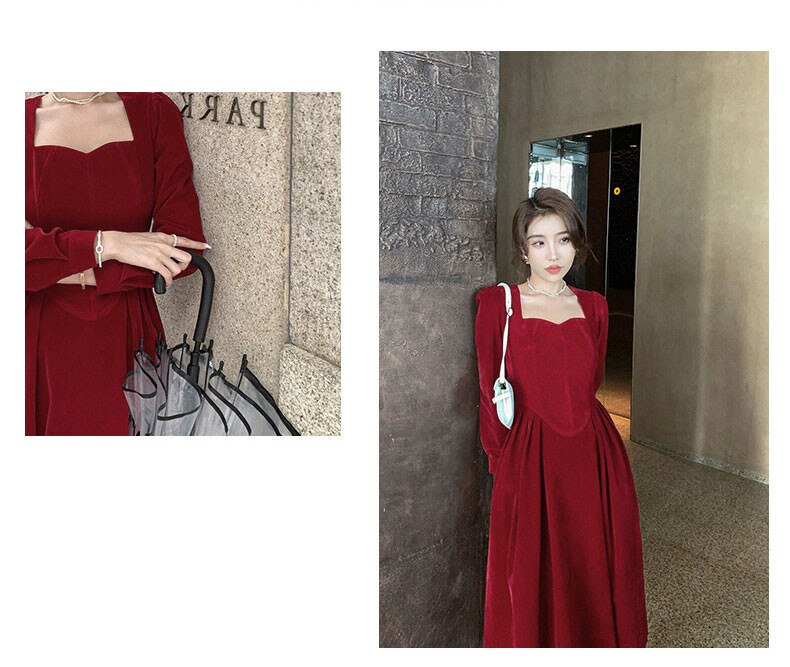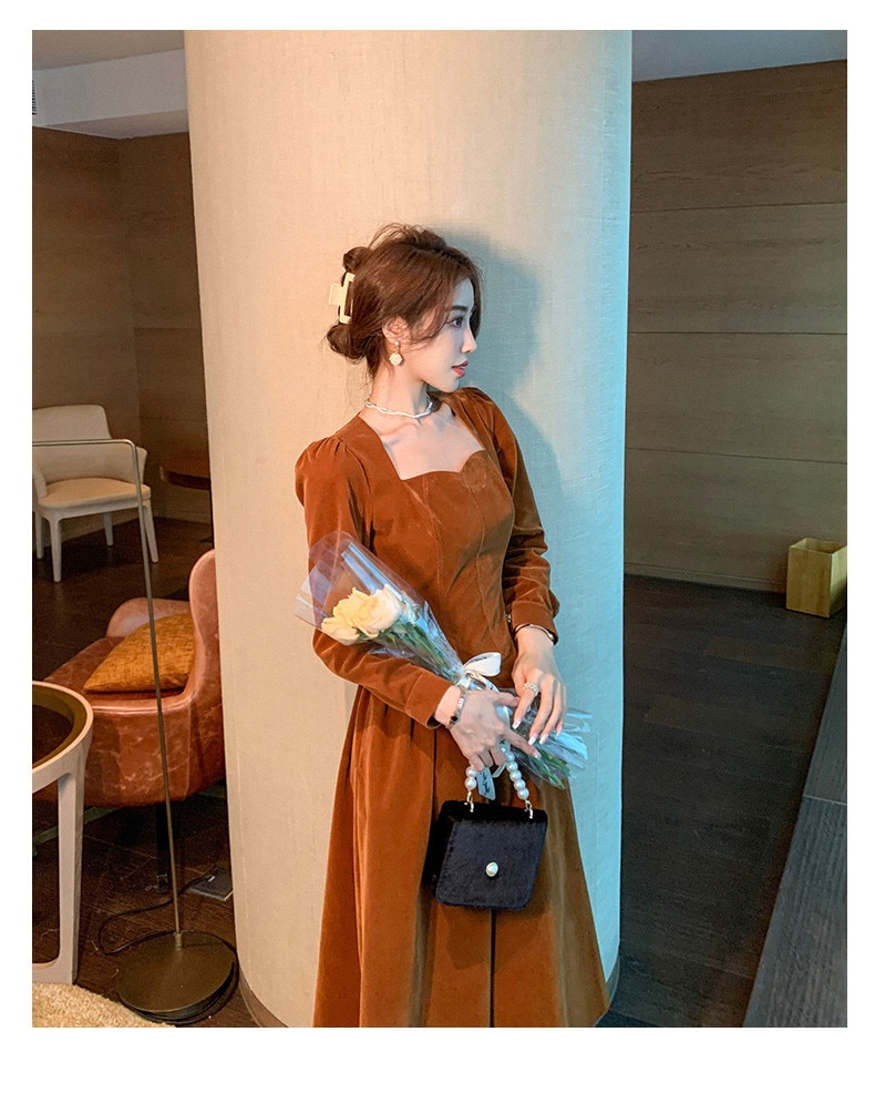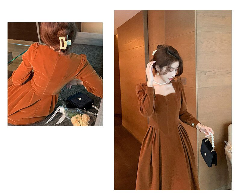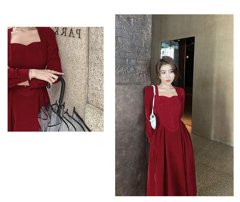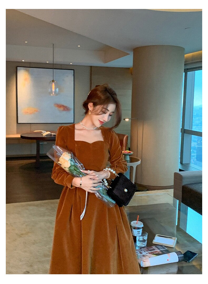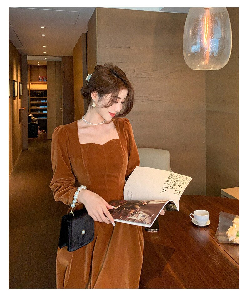 loveedsTM- France Vintage Dress Women Autumn Winter Solid Retro Elegant Evening Party Midi Dress Long Slevee Korean Style Dress Fairy