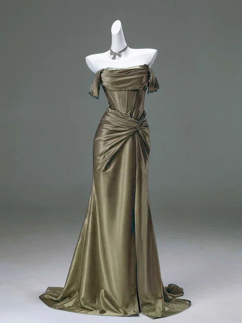 Free custom color and size blue/burgundy elegant off the shoulder pleated satin long formal mermaid ball gown evening dress party dress gh4245