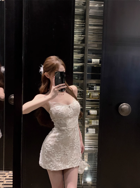 French Lace Halterneck Slim Fit Hip Camisole Homecoming Dress P3662