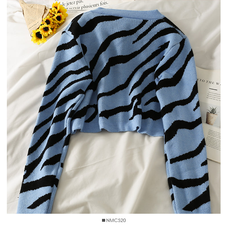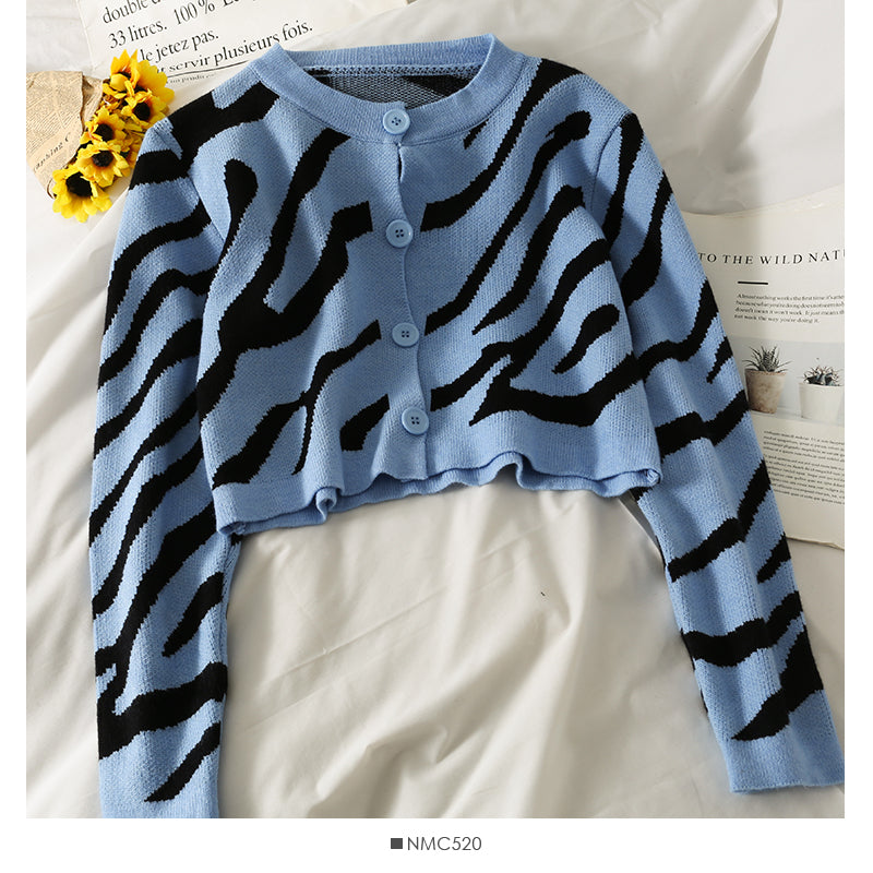 French minority crew neck single breasted cardigan short sweater 1898