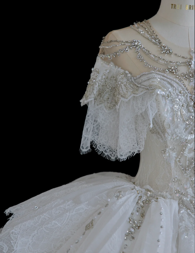 French Palace Lace Beaded Princess Floor-Length Wedding Dress P2884