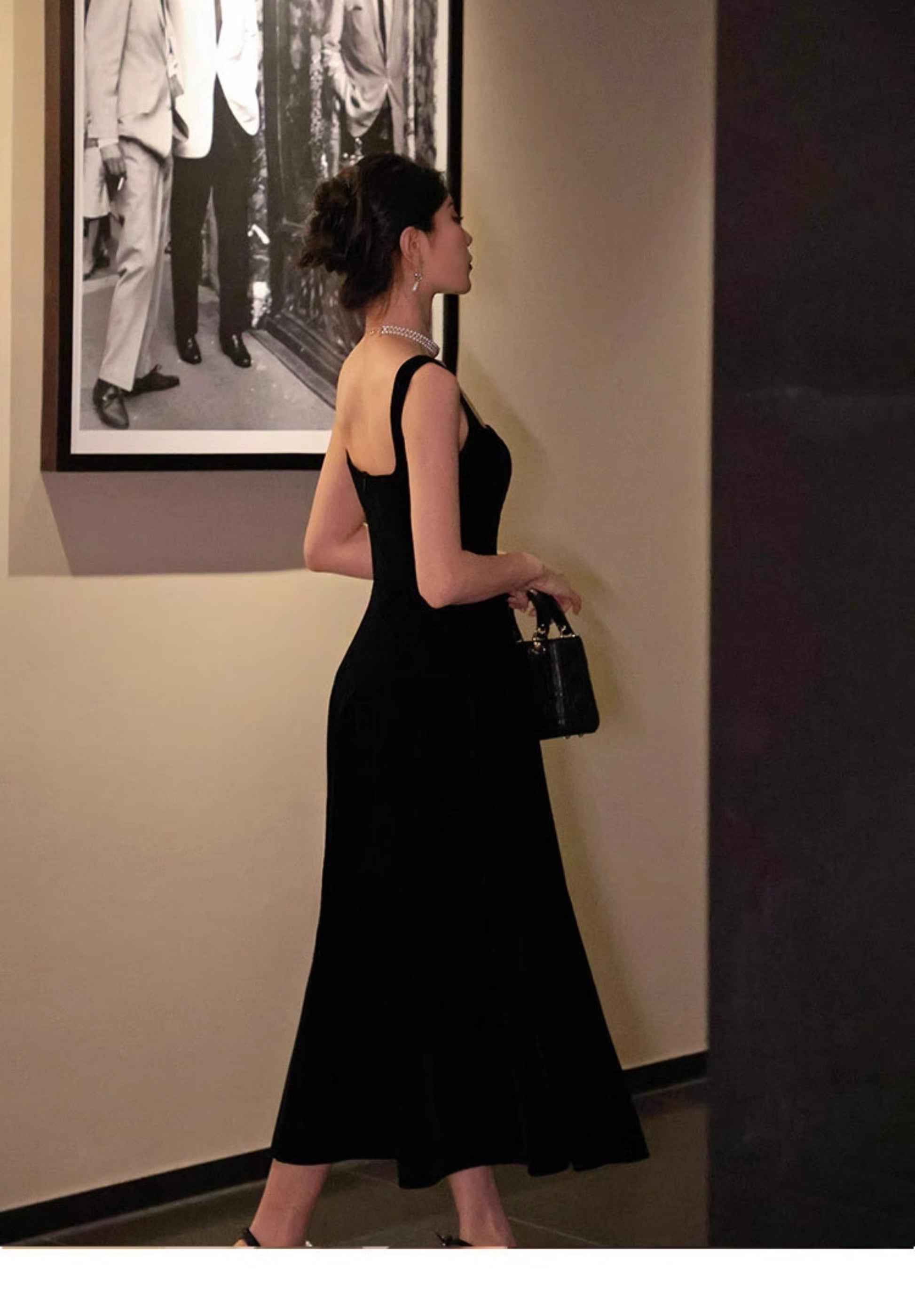 French Retro Burgundy A-Line Square Neck Velvet Dress for Birthday&Graduation ED01193