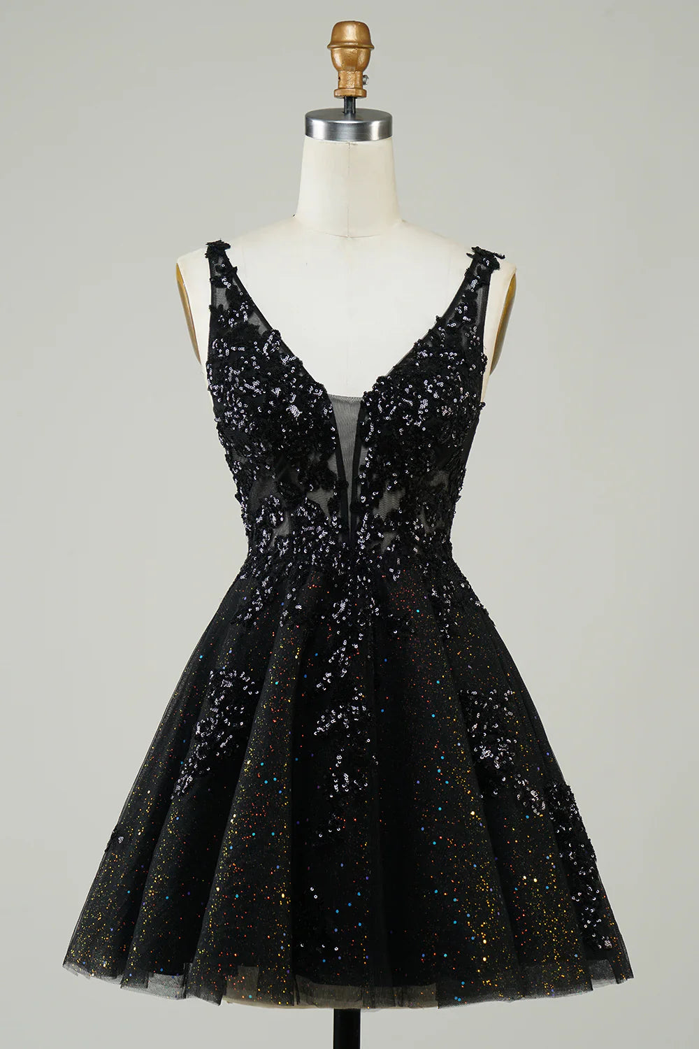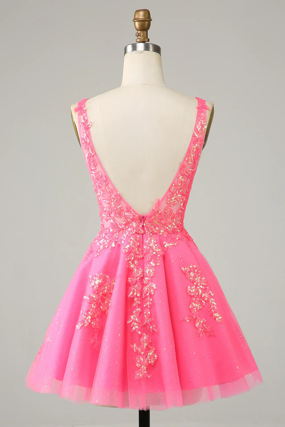 Fuchsia Sequined V Neck Backless Short Homecoming Dress