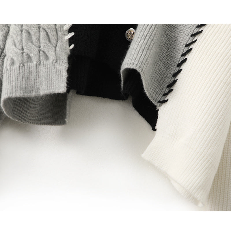 Gentle style contrast color stitching cardigan sweater ED0872