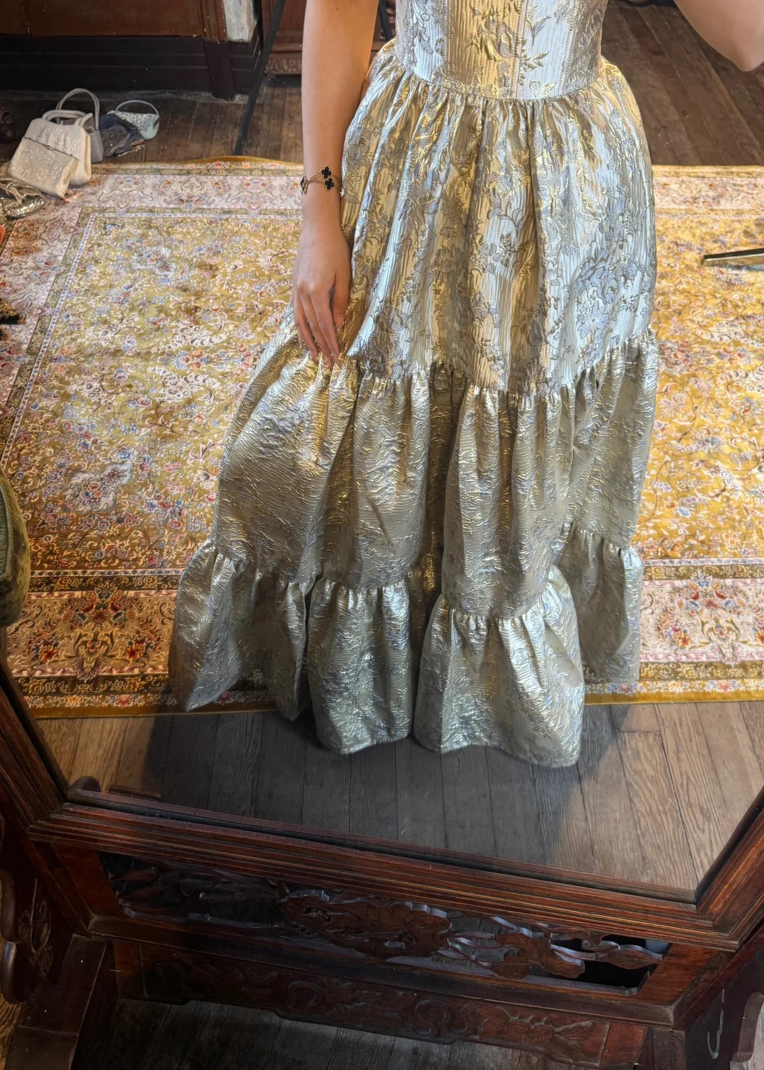 Gilded Elegant Fashion Vintage Long Satin Ball Gown Evening Dress Wedding Guest Party Dress Bridesmaid Dress Prom Dress gh3993