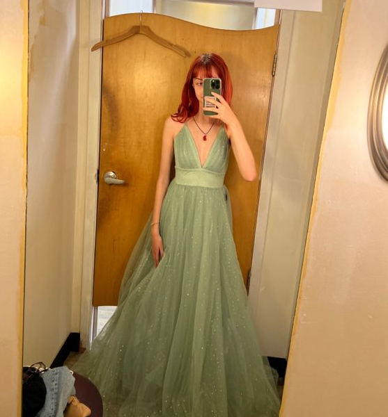 Glitter A-line V Neck Spaghetti Straps Prom Dress fg4188