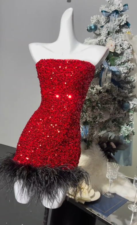 Glitter Blue Strapless A-Line Sequin Short Party Dresses Homecoming Dresses ED02843