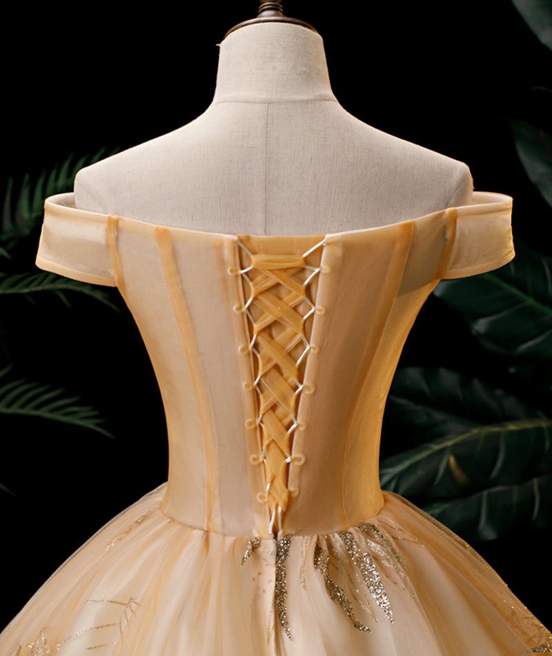 Gold A Line Off-the-shoulder Appliques Sequins Tulle Prom Dress SH1685