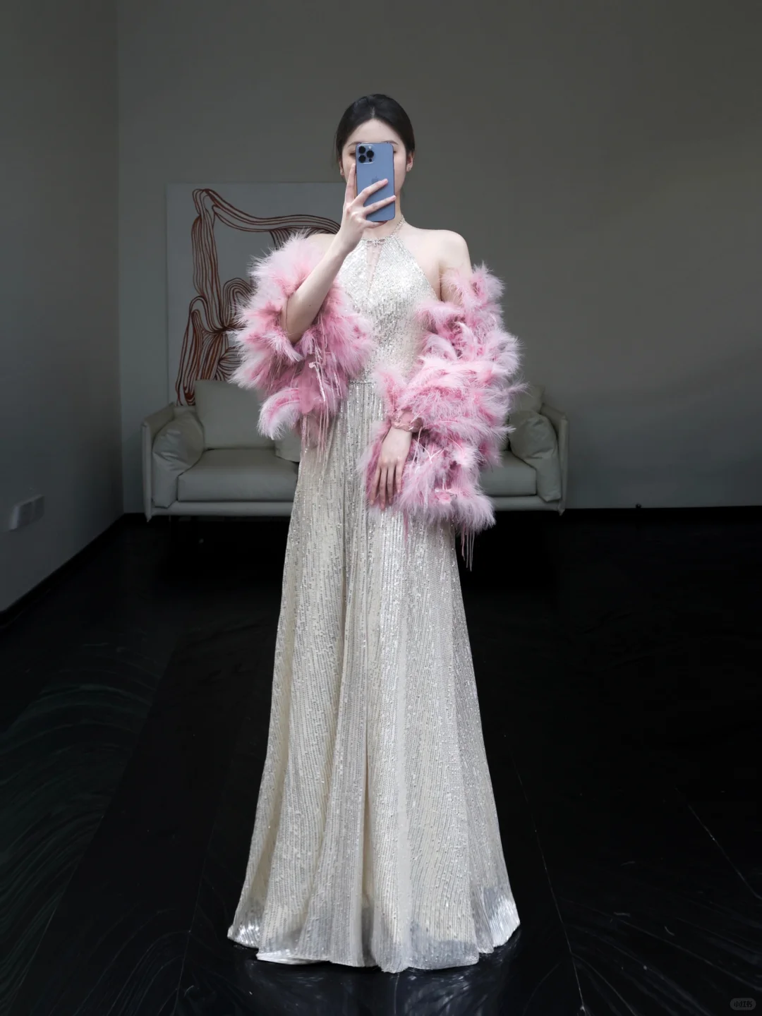 Gorgeous A line Halter Sequin Long Prom Dress Party Dress Graduation Dresses DP867