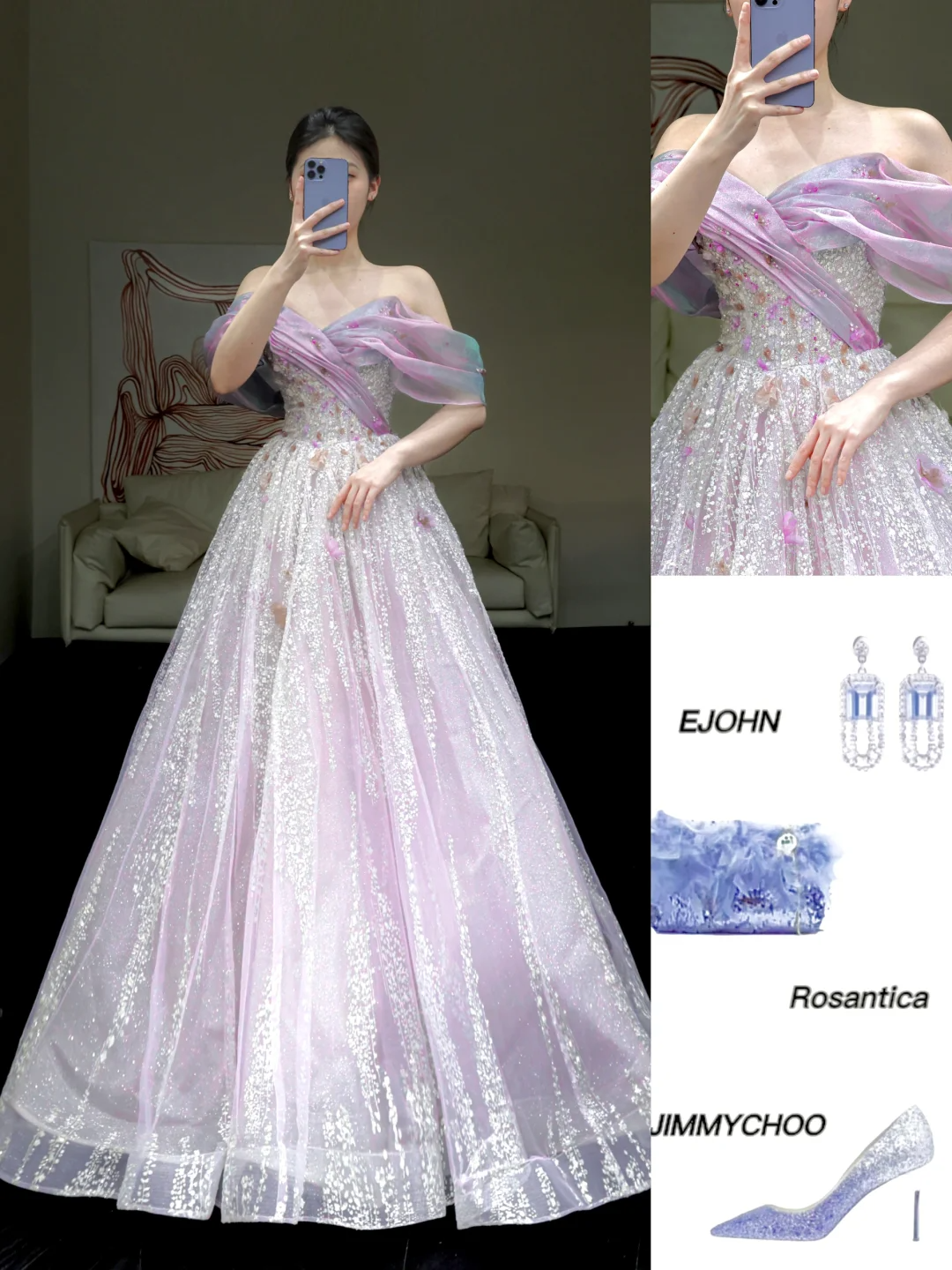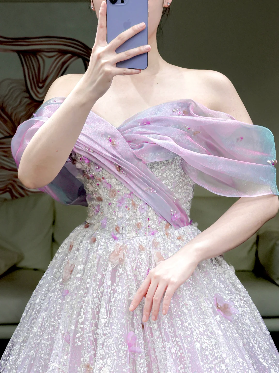 Gorgeous A line Off The Shoulder Lilac Sequin Long Prom Dress Party Dress Graduation Dresses DP857