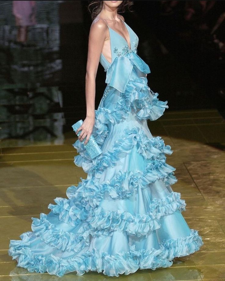Gorgeous A Line Spaghetti Strap Beaded Tiered Blue Chiffon Long Prom Dress Evening Dress SH2654
