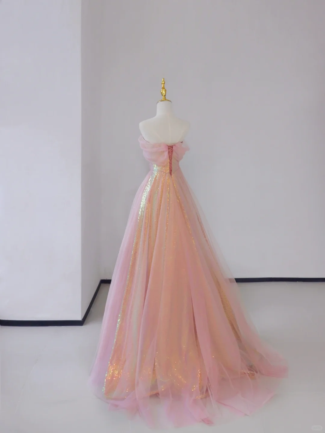 Gorgeous A Line Sweetheart Sleeveless Sequin Pink Long Prom Dresses Graduation Dresses DP502