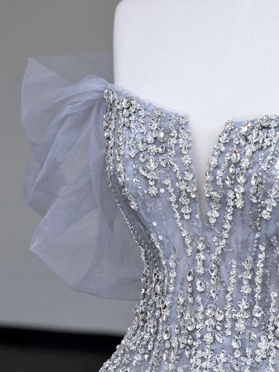 Gorgeous Ball Gown Off The Shoulder Silver Gray Sequin Long Prom Dresses Graduation Dresses DP721