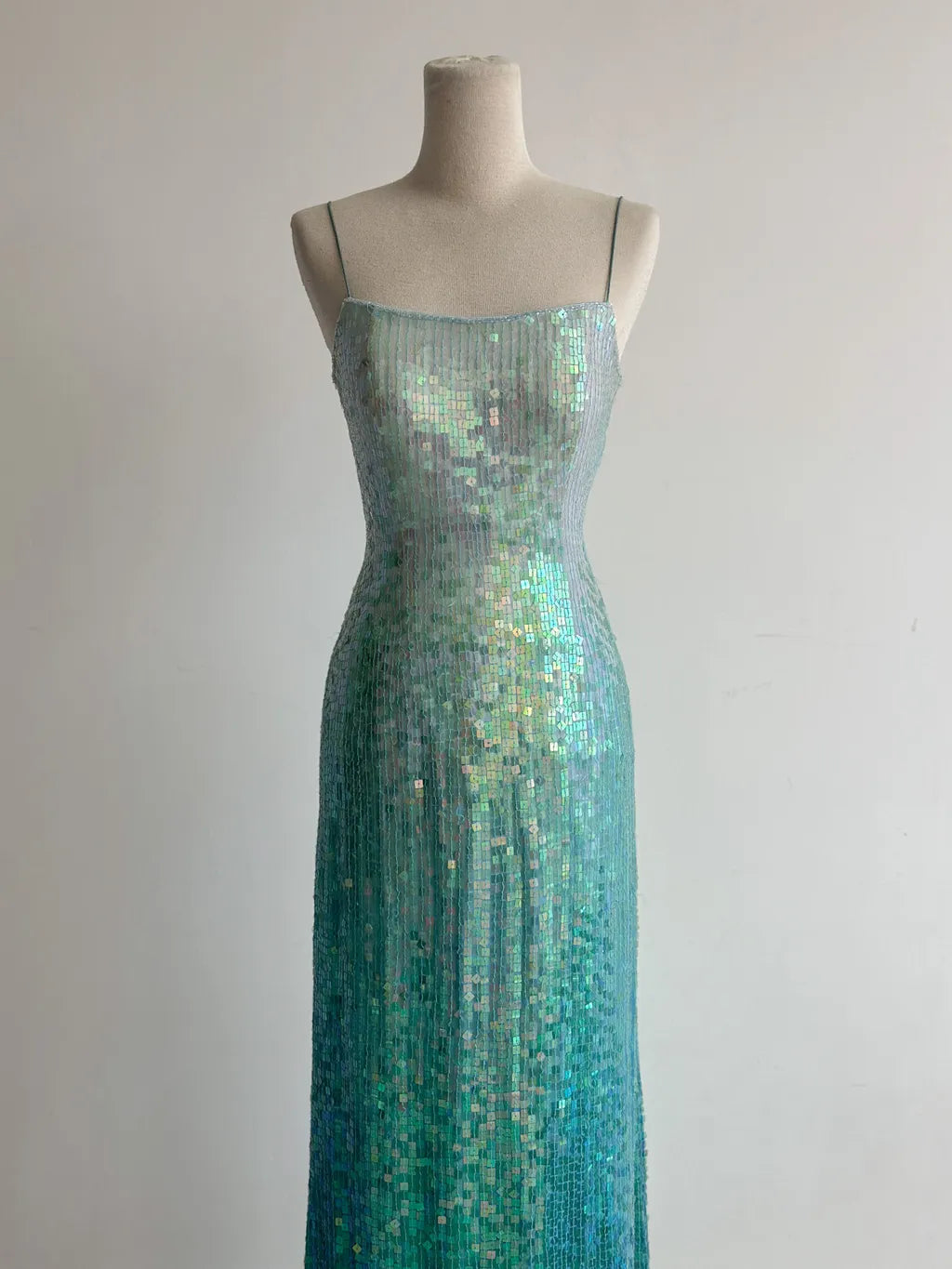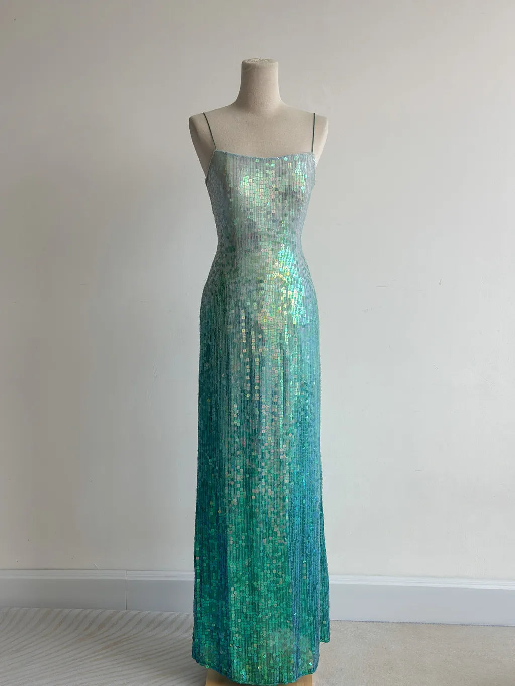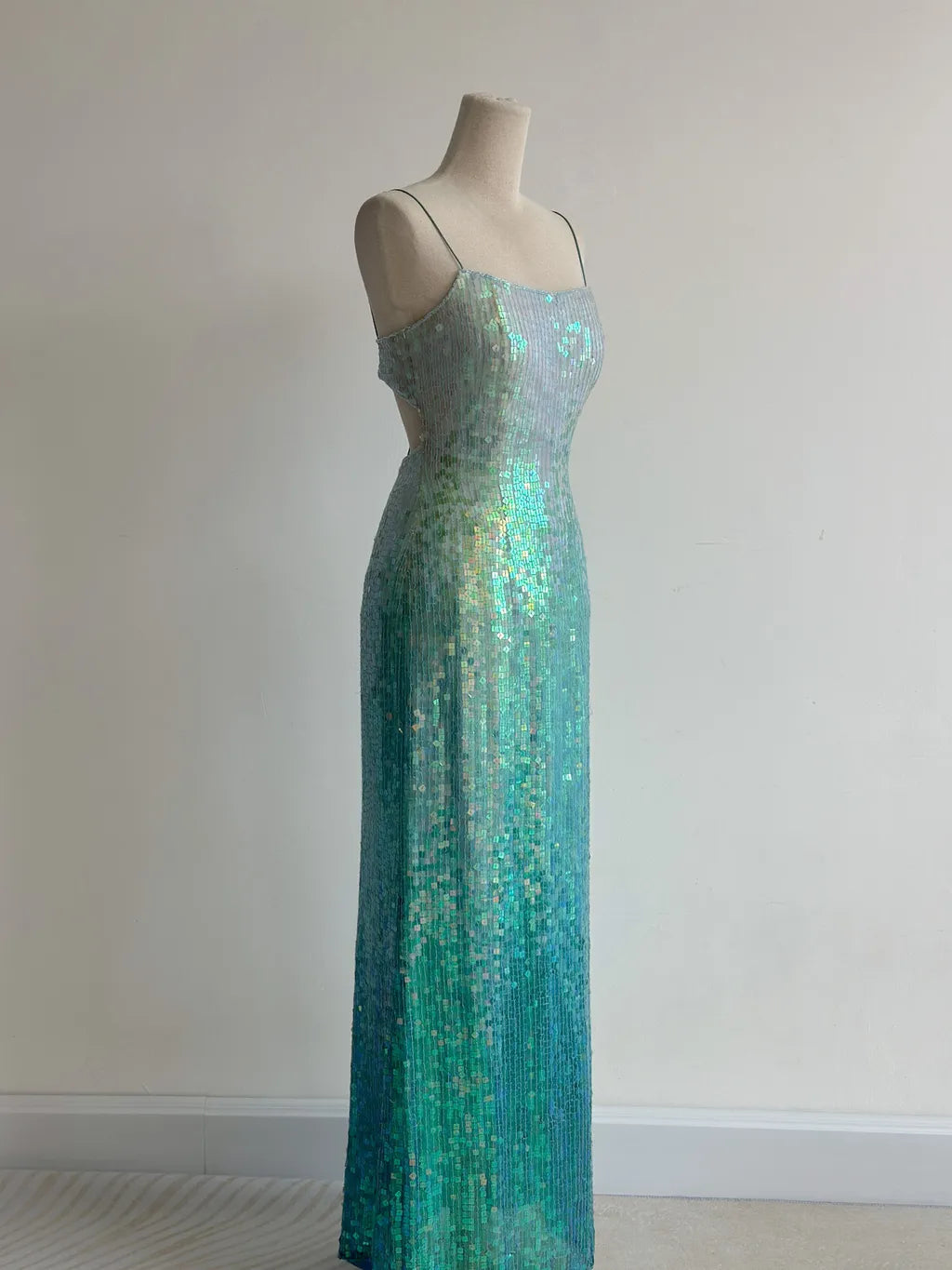 Gorgeous Gradient Jade Spaghetti Strap Sheath Sequins Prom Dresses Backless Evening Gowns ED02427
