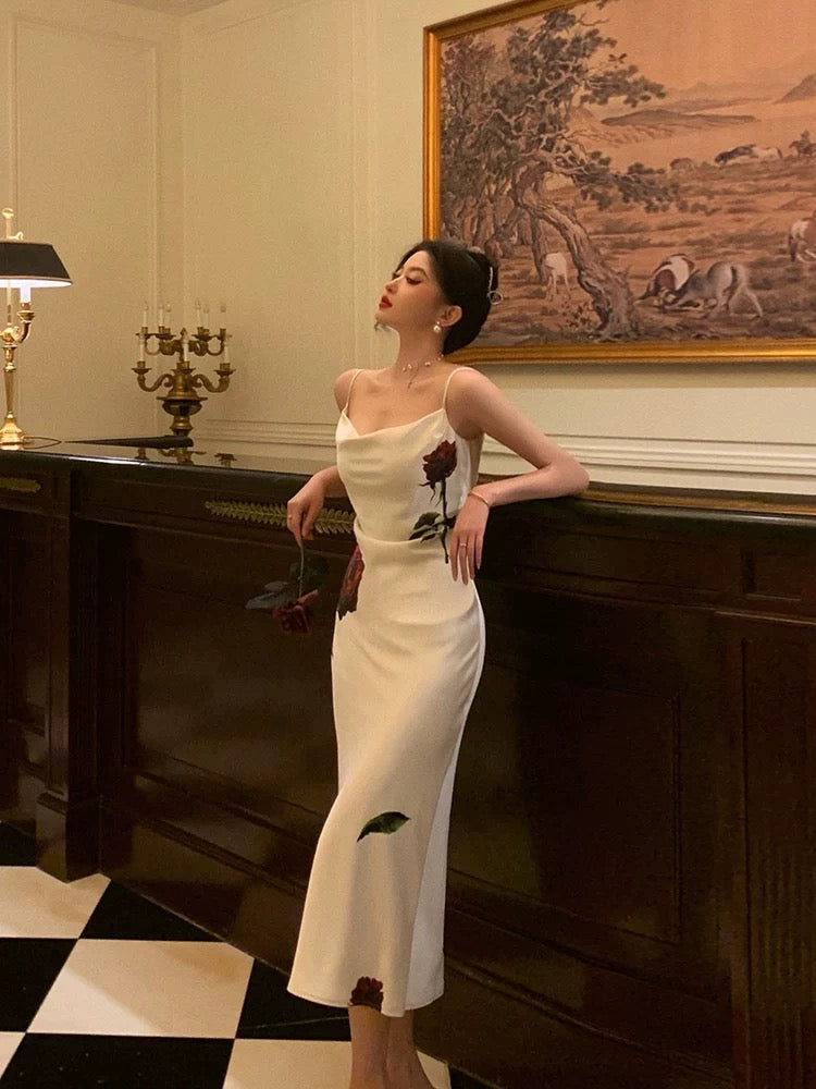 Gorgeous Mermaid Spaghetti Straps White Floral Date Night Dress Prom Dresses Birthday Outfit SD725