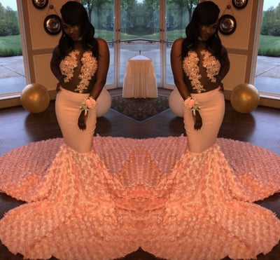 GORGEOUS PINK FLOWERS LACE APPLIQUES PROM DRESS SA132