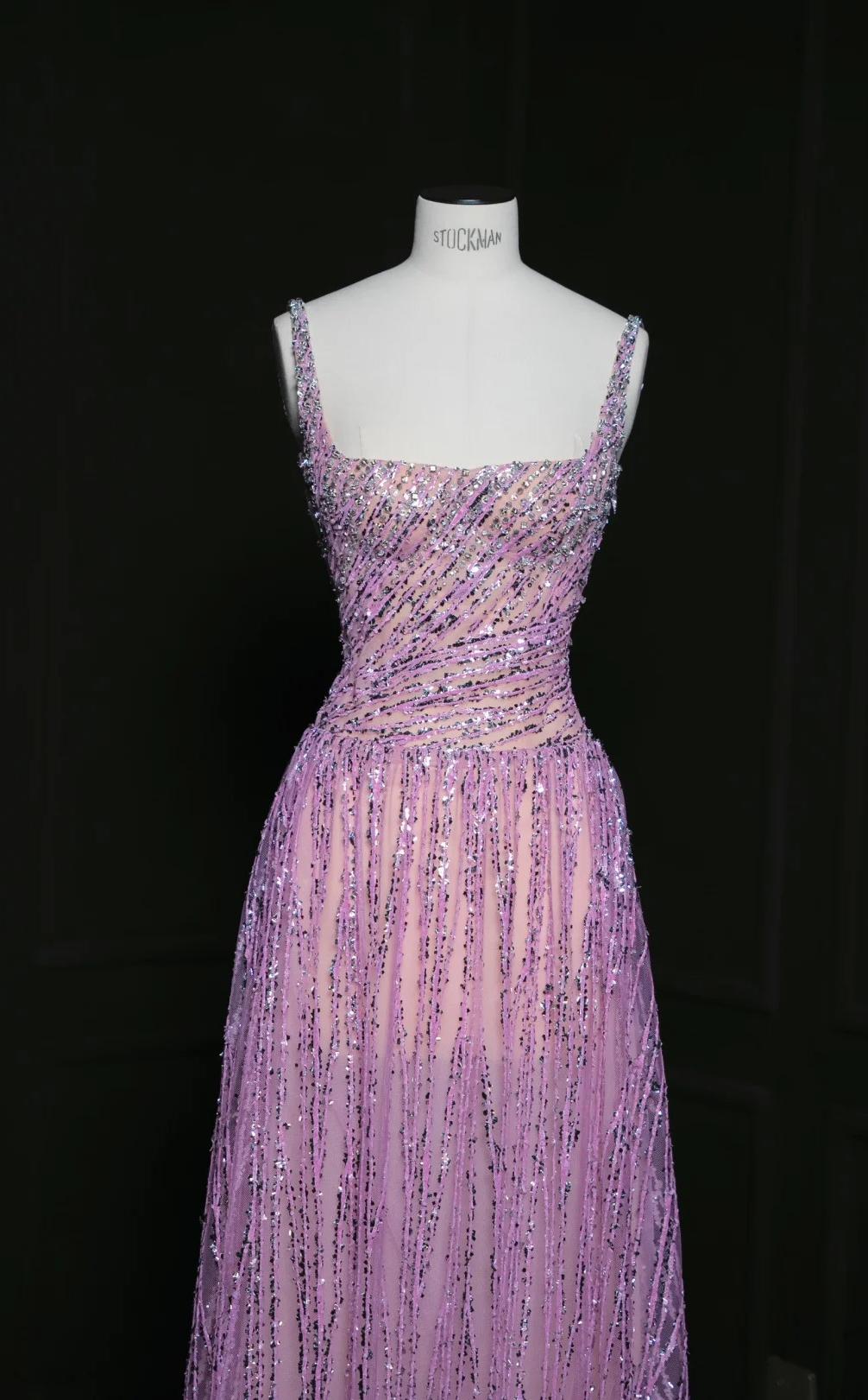 Gorgeous Purple Square Neck A-Line Sequin Prom Dresses Sweet Birthday Party Dress ED02477