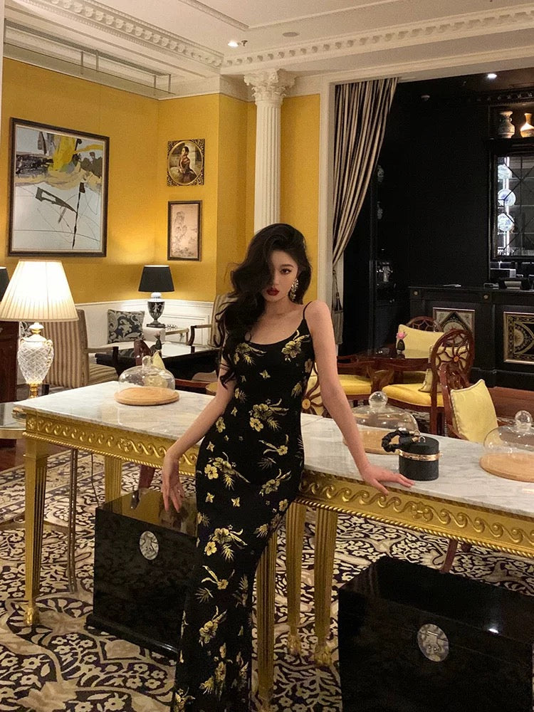 Gorgeous Sheath Spaghetti Straps Black Date Night Party Dress Prom Dresses Birthday Outfits SD1073