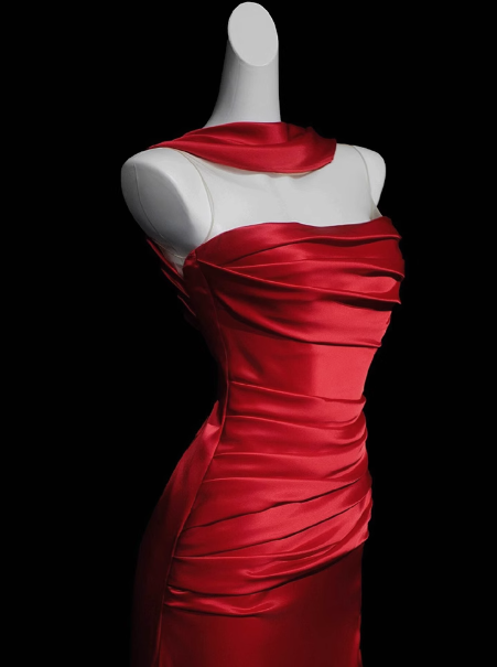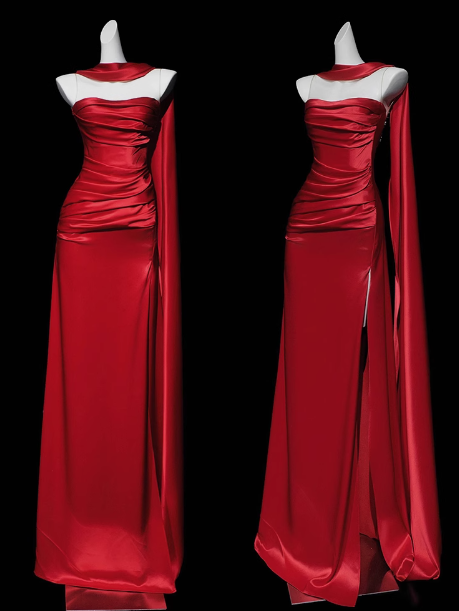 Gorgeous Sheath Strapless Red Satin Slit Prom Dresses Formal Summer Wedding Guest Dresses Wedding Guest Outfits DP2278