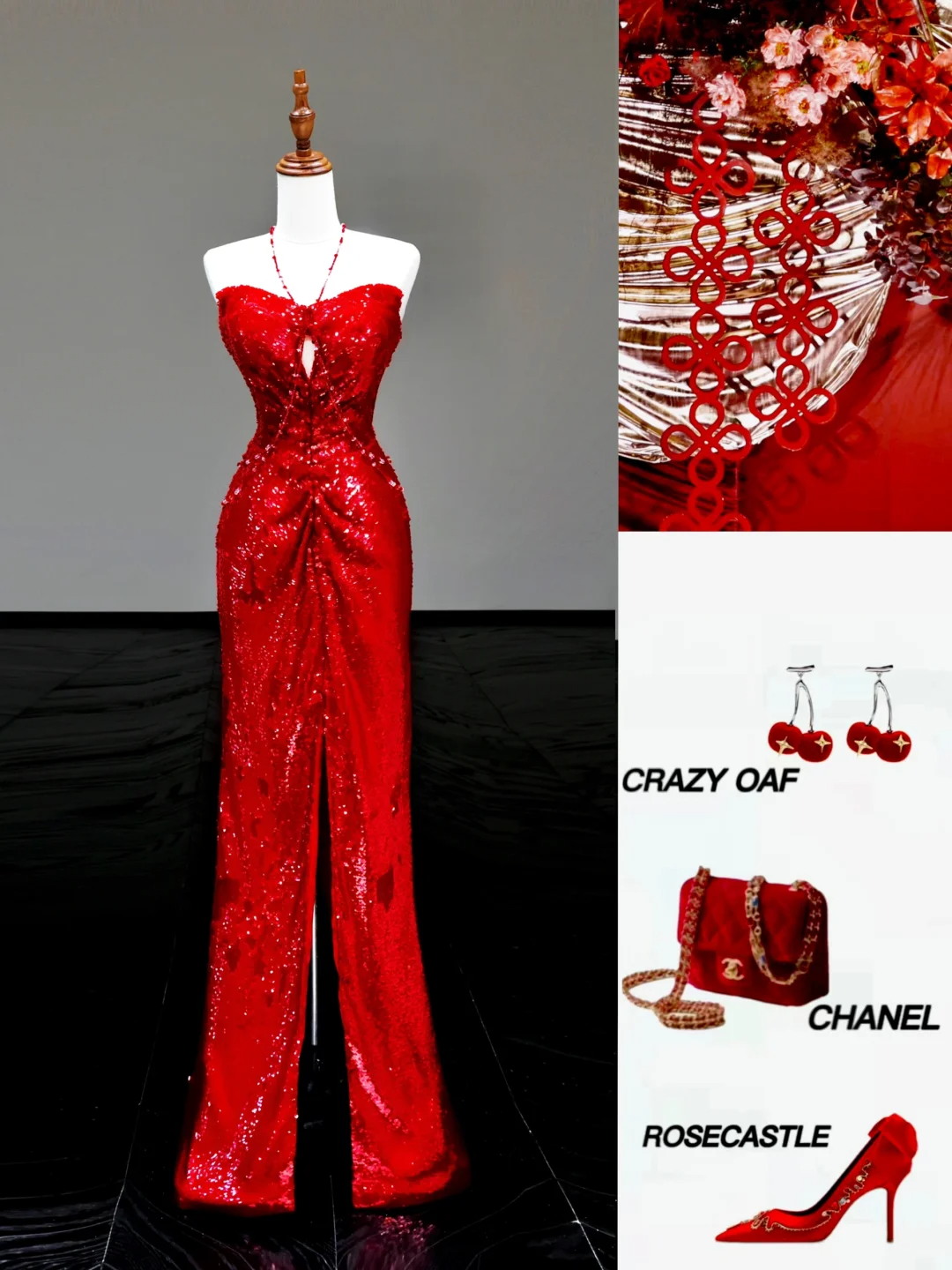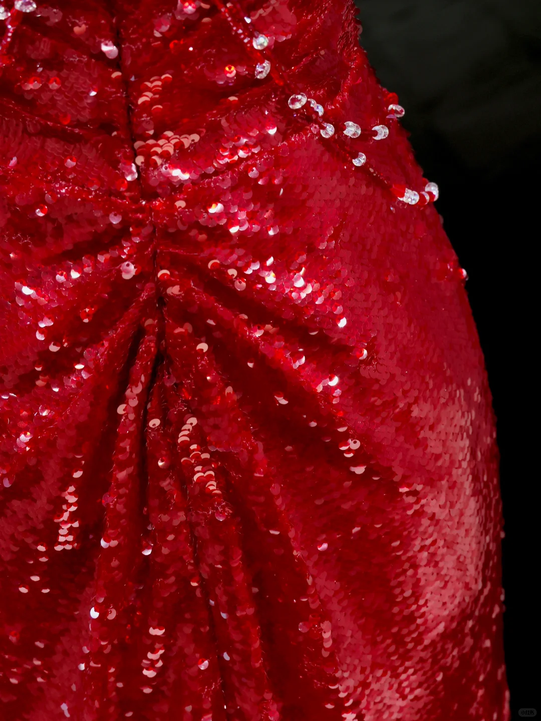 Gorgeous Sheath Sweetheart Sequin Red Slit Long Prom Dress Party Dress Graduation Dresses DP802