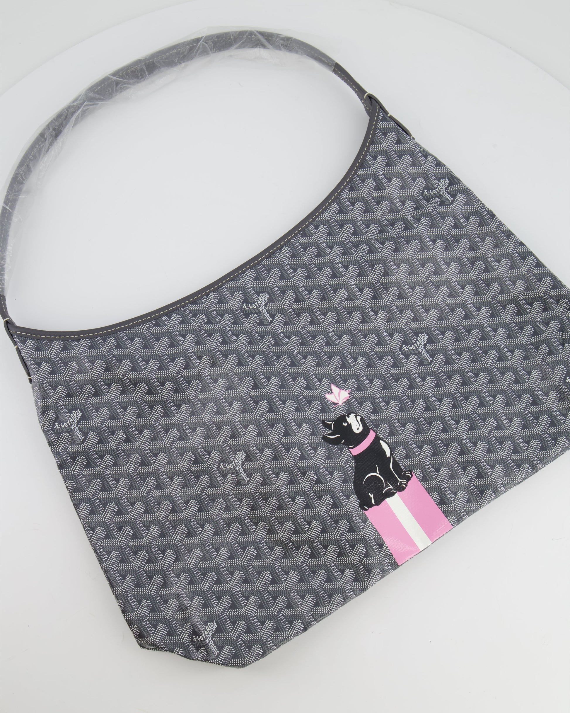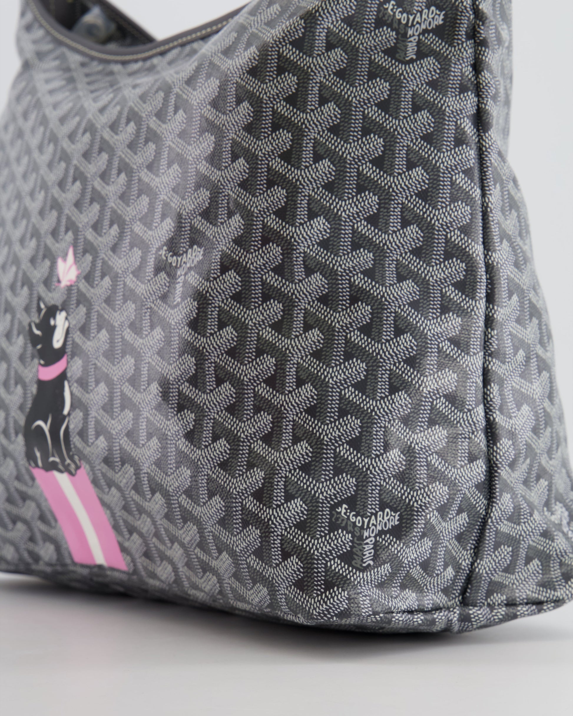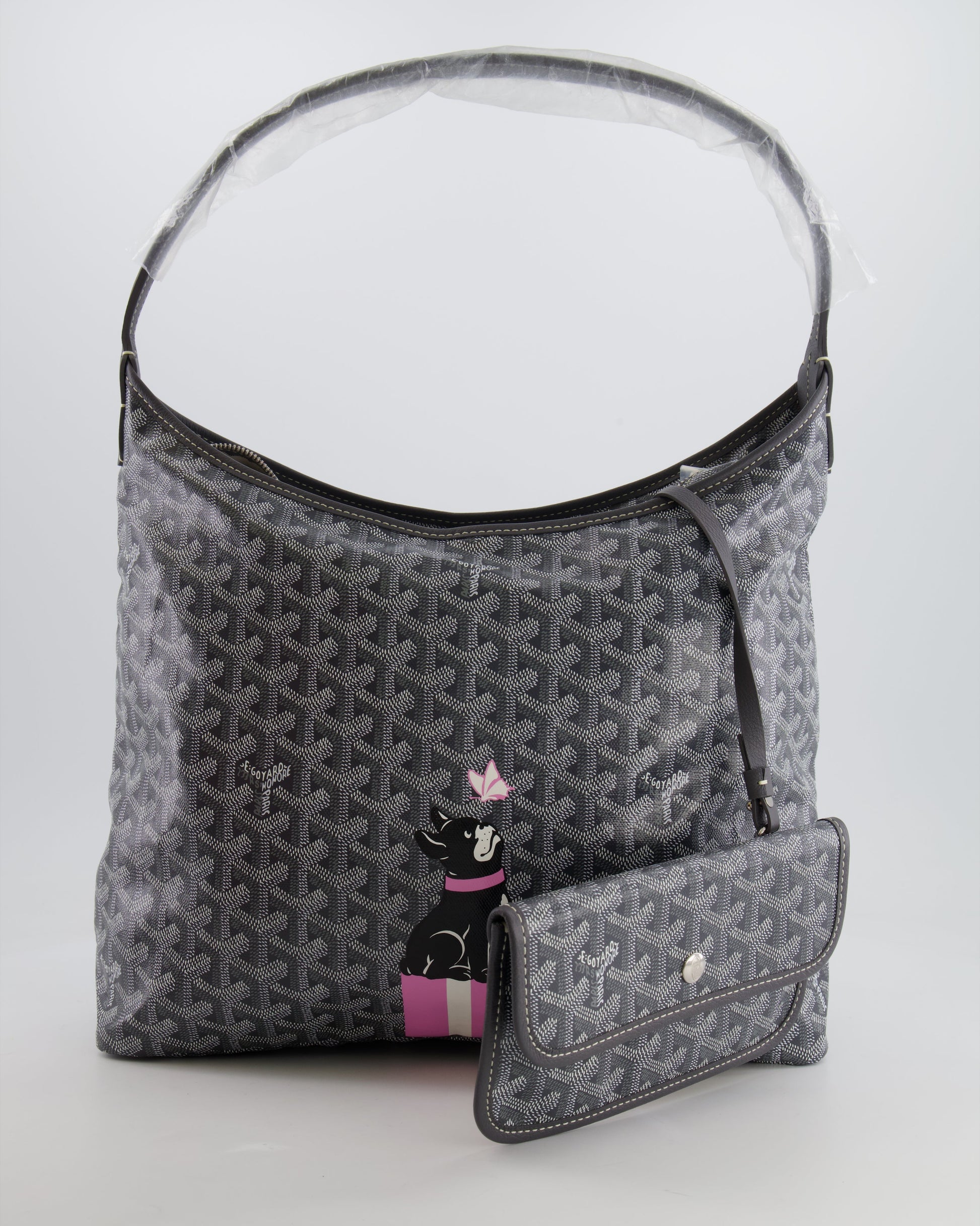 Goyard Grey Goyardine Canvas Boheme Hobo Bag with Dog Print