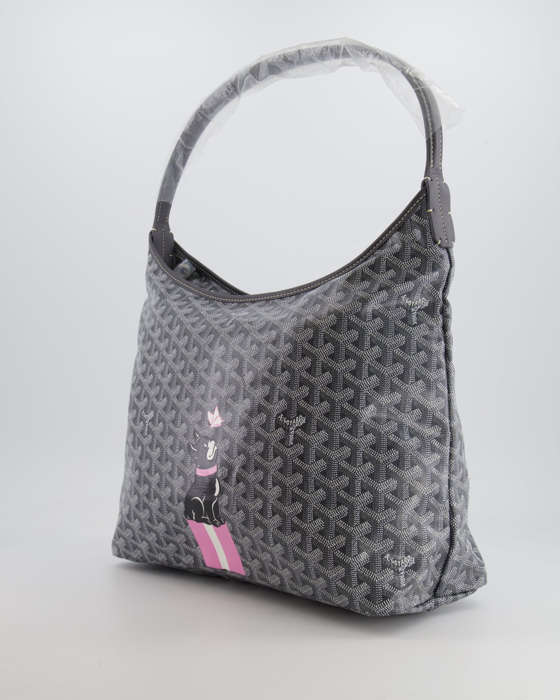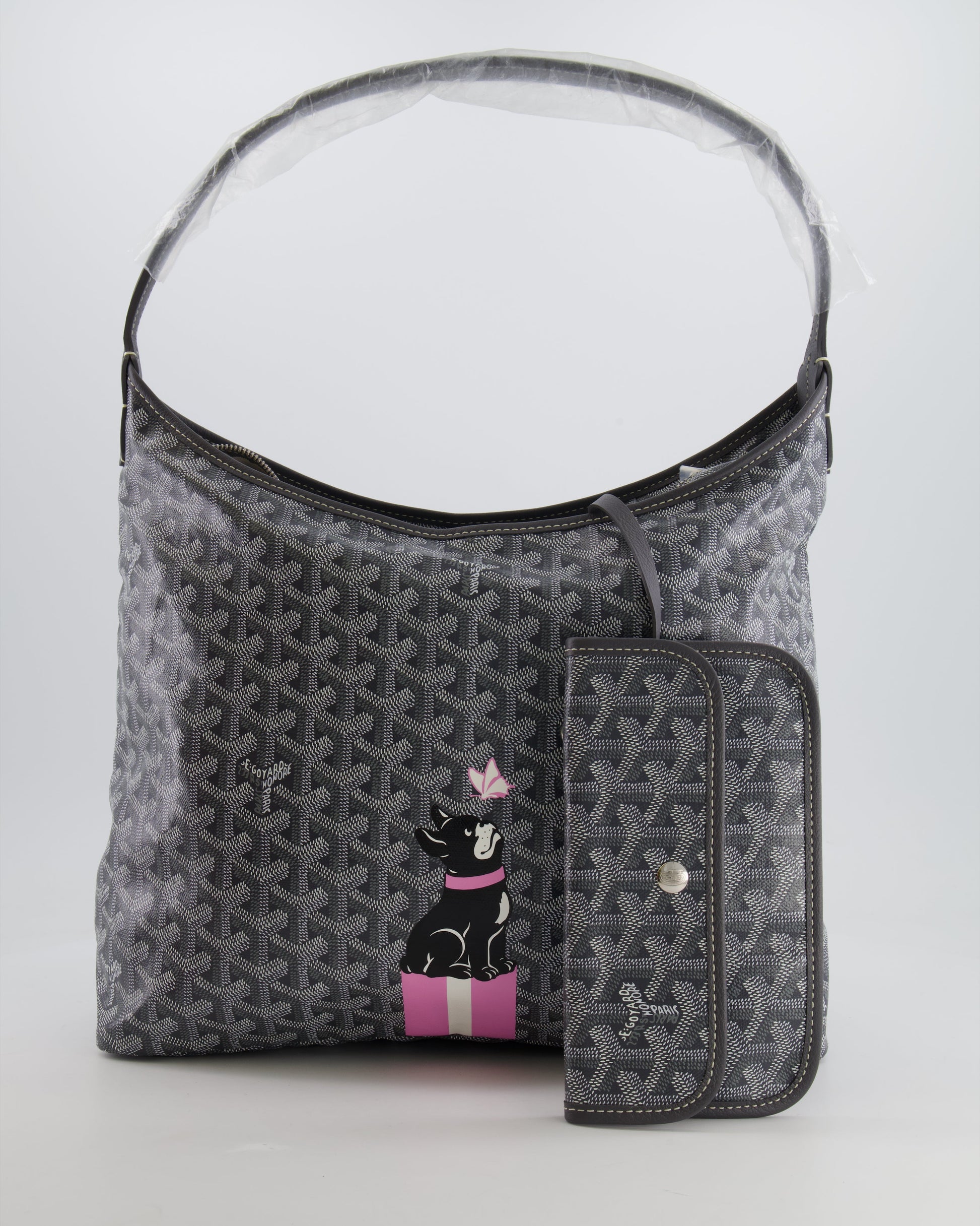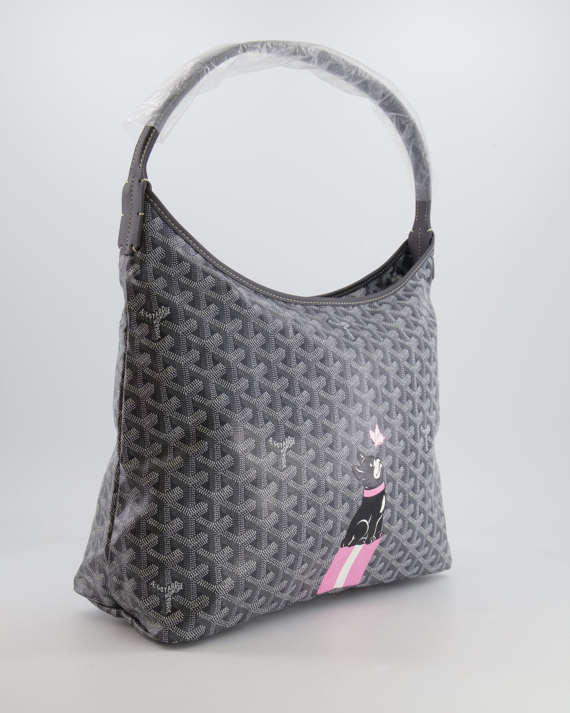Goyard Grey Goyardine Canvas Boheme Hobo Bag with Dog Print