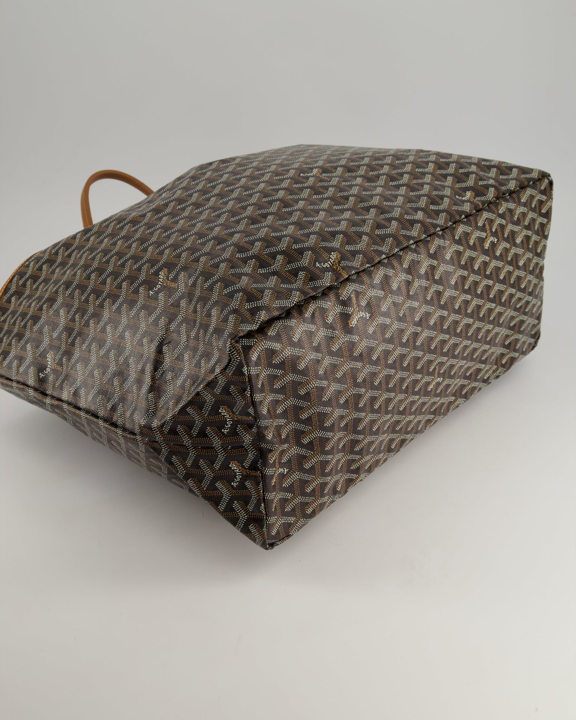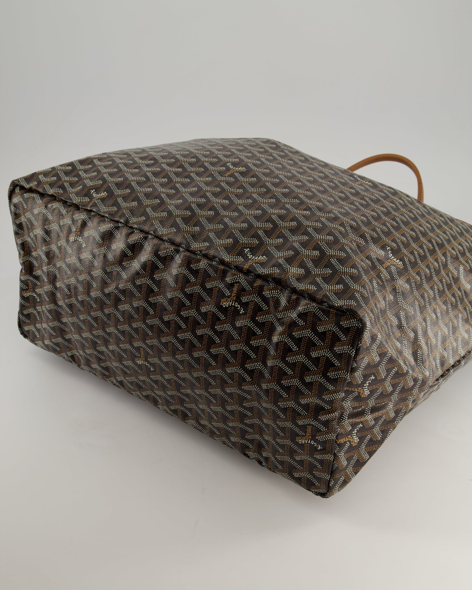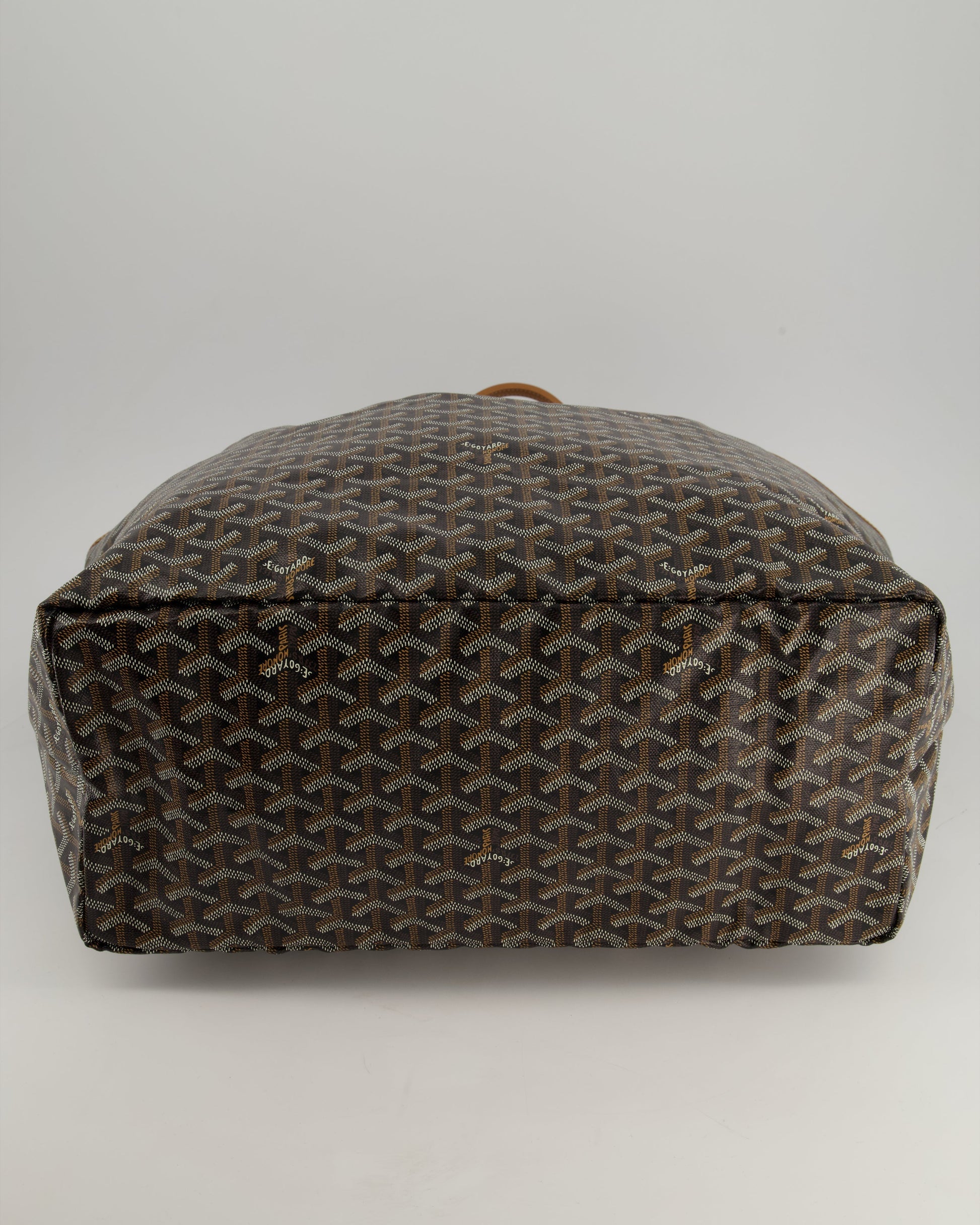 Goyard Saint Louis GM Black Shoulder Tote Bag in Goyardine Canvas and Brown Chevroches Calfskin Leather