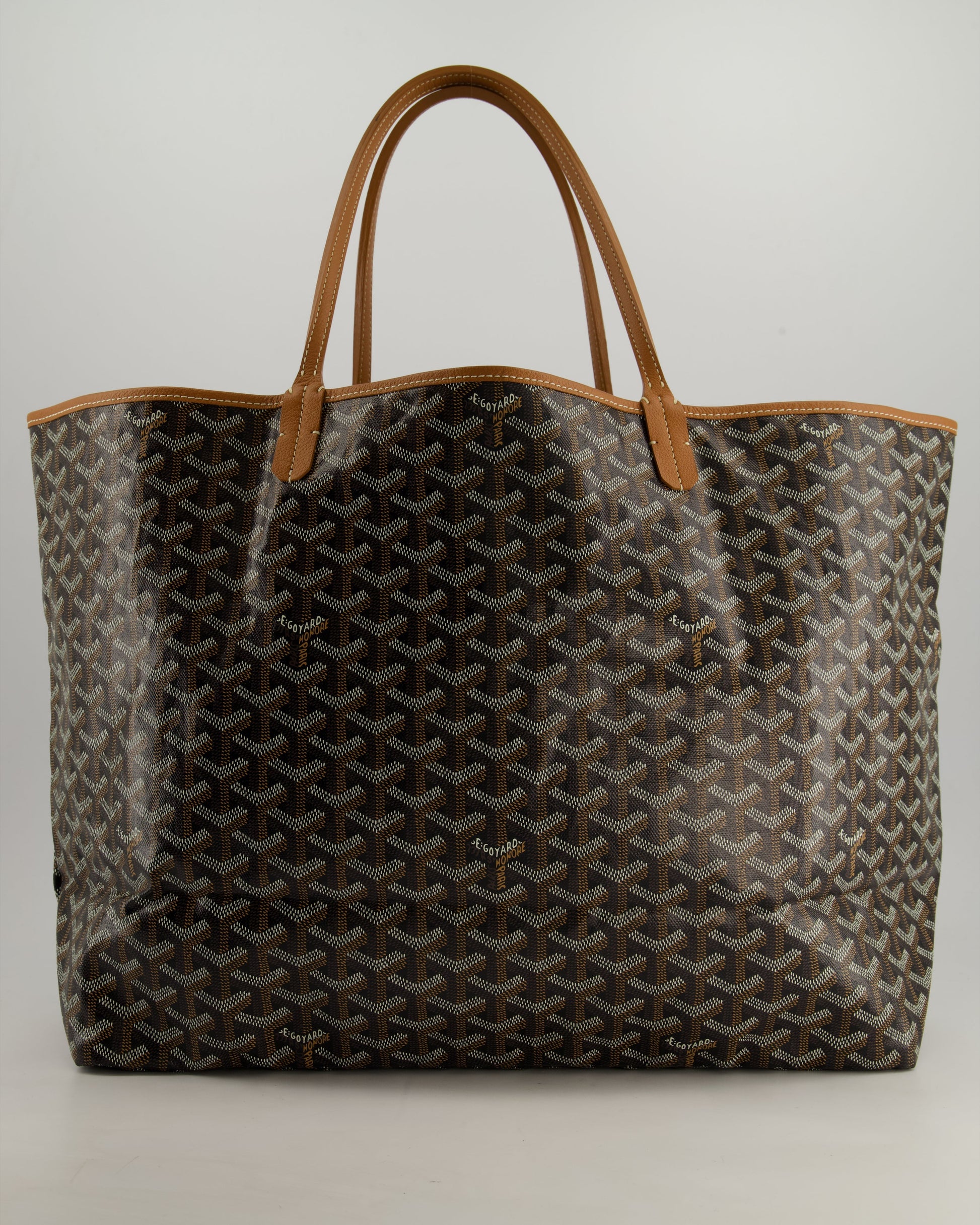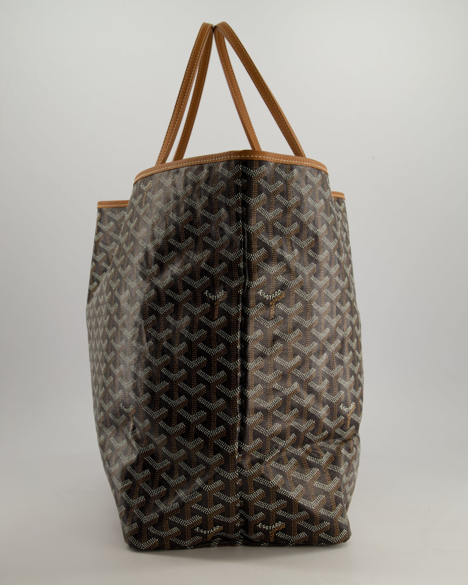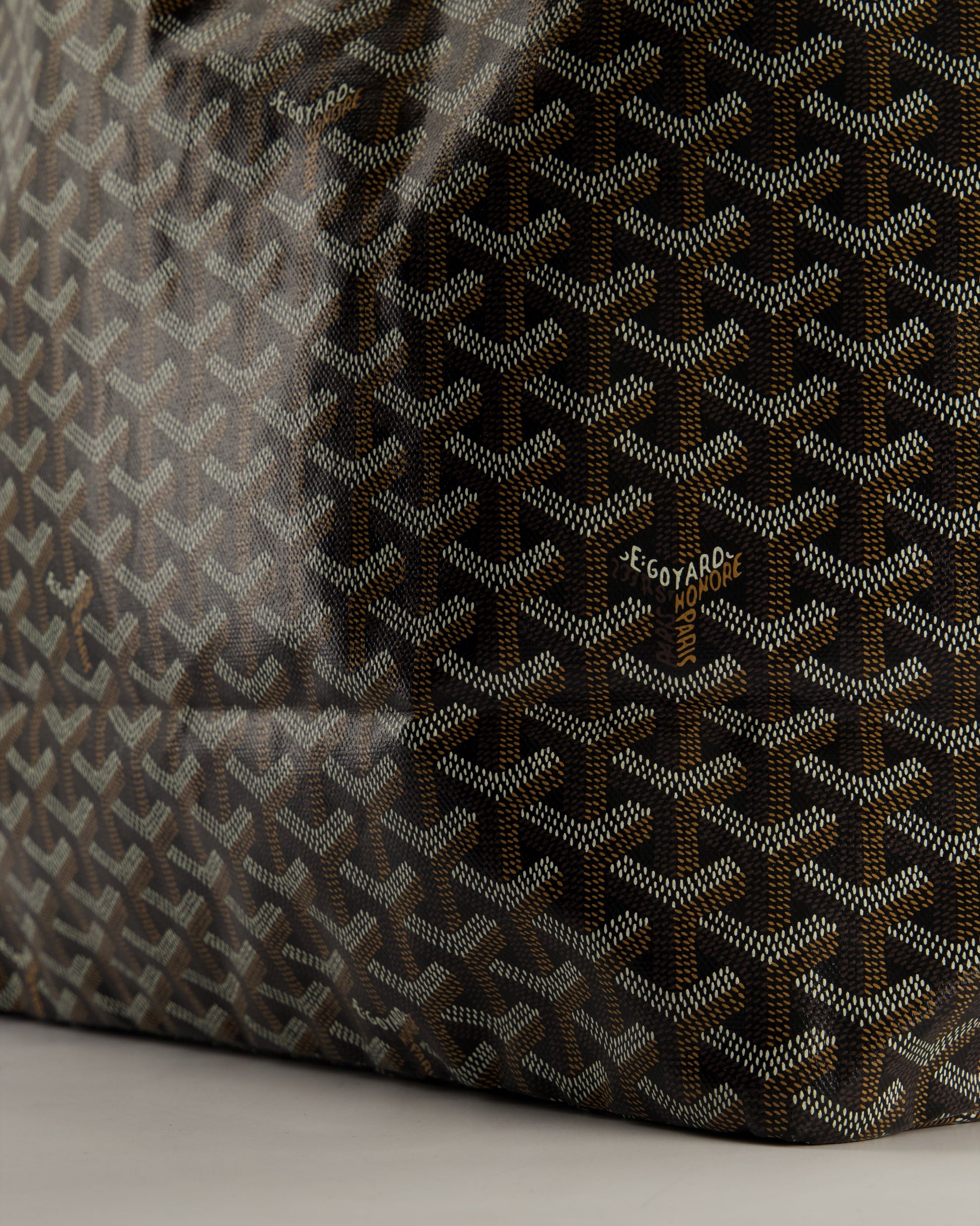 Goyard Saint Louis GM Black Shoulder Tote Bag in Goyardine Canvas and Brown Chevroches Calfskin Leather