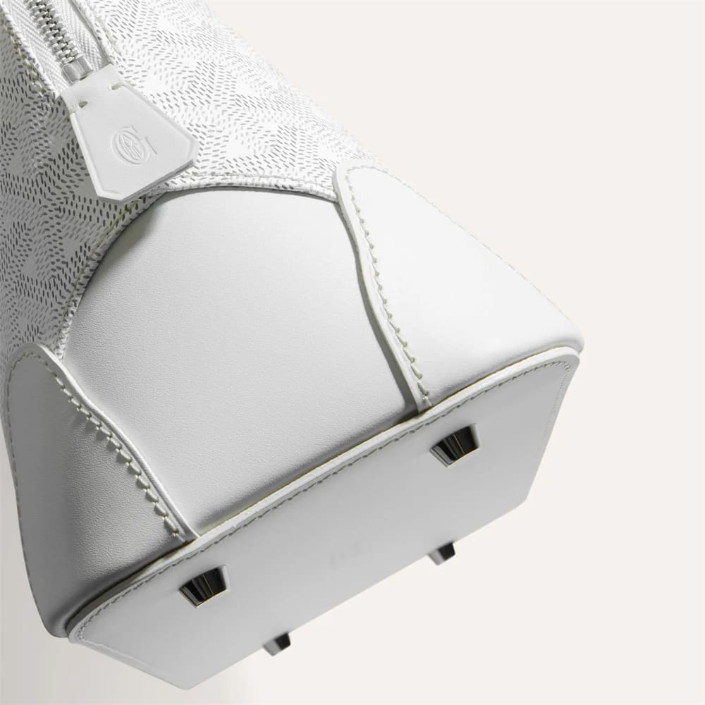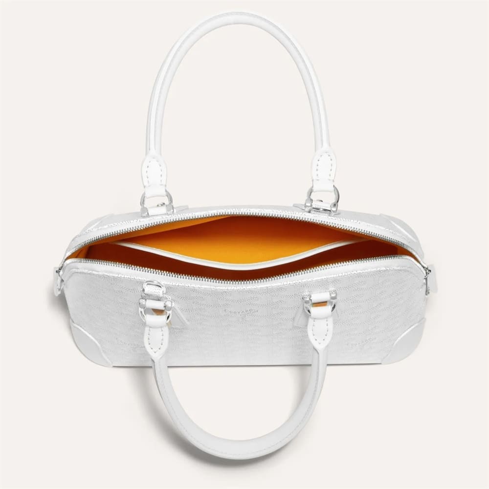 29 cm x 13 cm x 22.5 cm , 0.53 kg Goyardine Canvas & Chevroches Calfskin Yellow Cotton Lining Palladium Zipper with double sliders 4 riveted beech rods inside flat pocket Height of handle : 12 cm