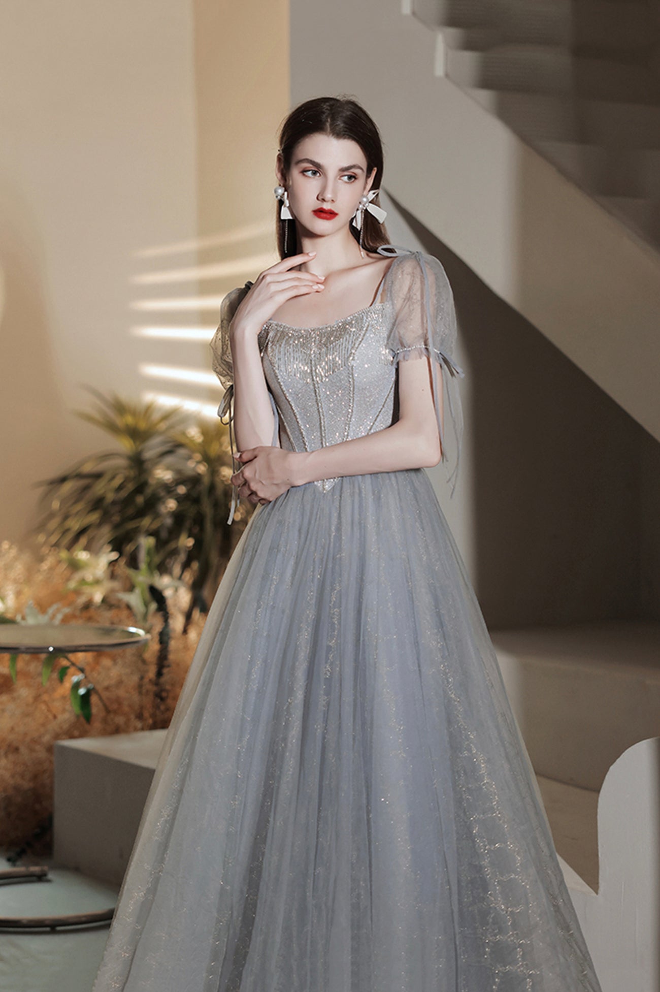 The Gray Tulle Sequins Short Prom Dress is a dazzling choice for your special event. Its A-line silhouette and short sleeves offer comfort and style. Adorned with sequins, it sparkles with every move, ensuring you shine on homecoming night or any party. Make a chic statement in gray and embrace the night's magic.