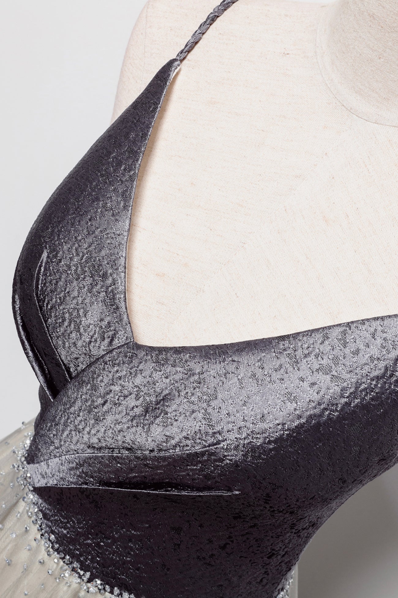The Gray Tulle Long A-Line Prom Dress is a captivating choice for your special evening. Its V-neckline and delicate spaghetti straps create an alluring, feminine look. The A-line silhouette flows gracefully, providing comfort and elegance. In soft gray, this dress is a timeless statement of style and sophistication.