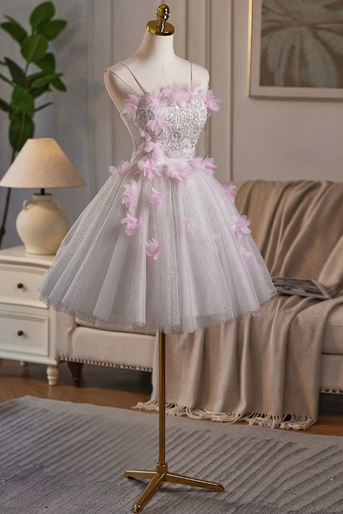 Gray Tulle Sequins Short Prom Dress, Lovely A-Line Evening Party Dress