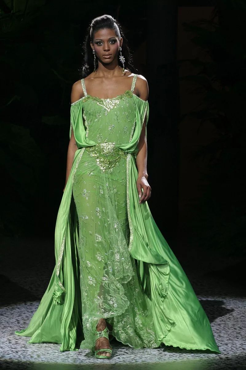 Green Dreamy A Line Spaghetti Strap Beaded Sequin Satin Tulle Prom Dress Ball Gown SH3871