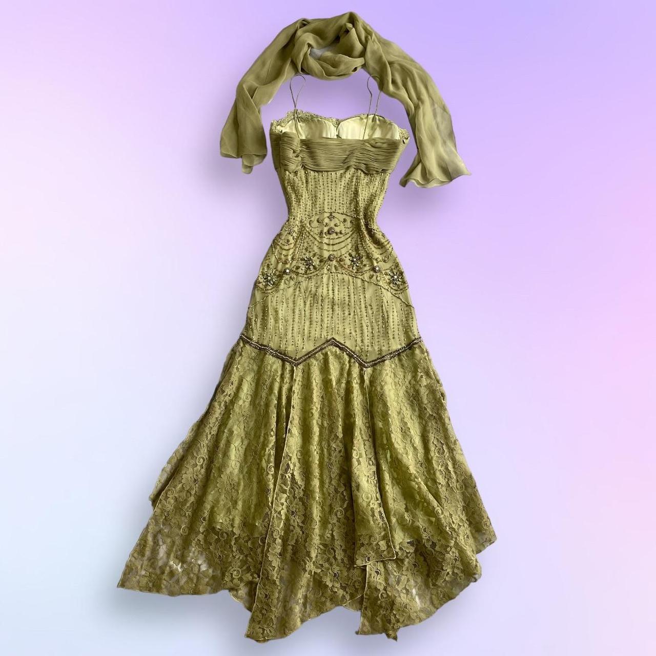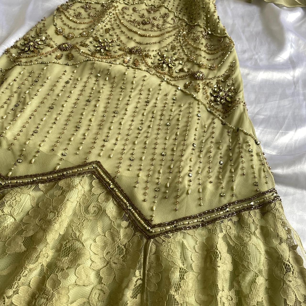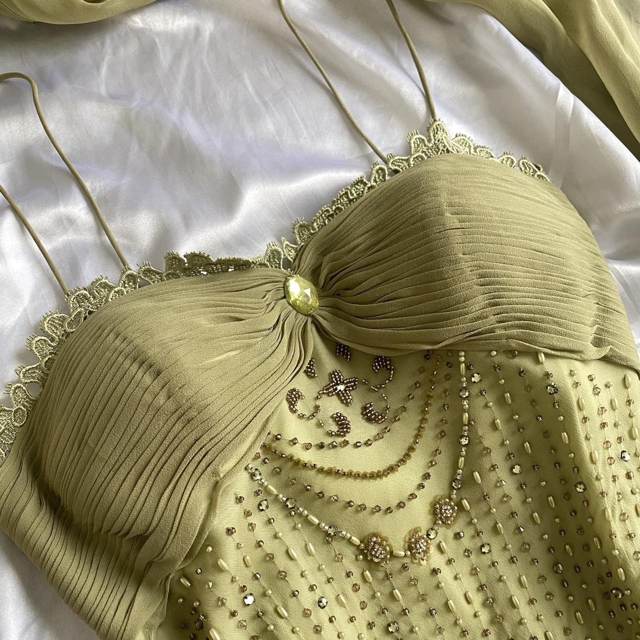 Green Gold Retro Fashion Beautiful Fantasy Exquisite Rhinestone Gemstone Beaded Spaghetti Straps Long Chiffon Lace Ball Gown Evening Party Dress Prom Dress gh3755