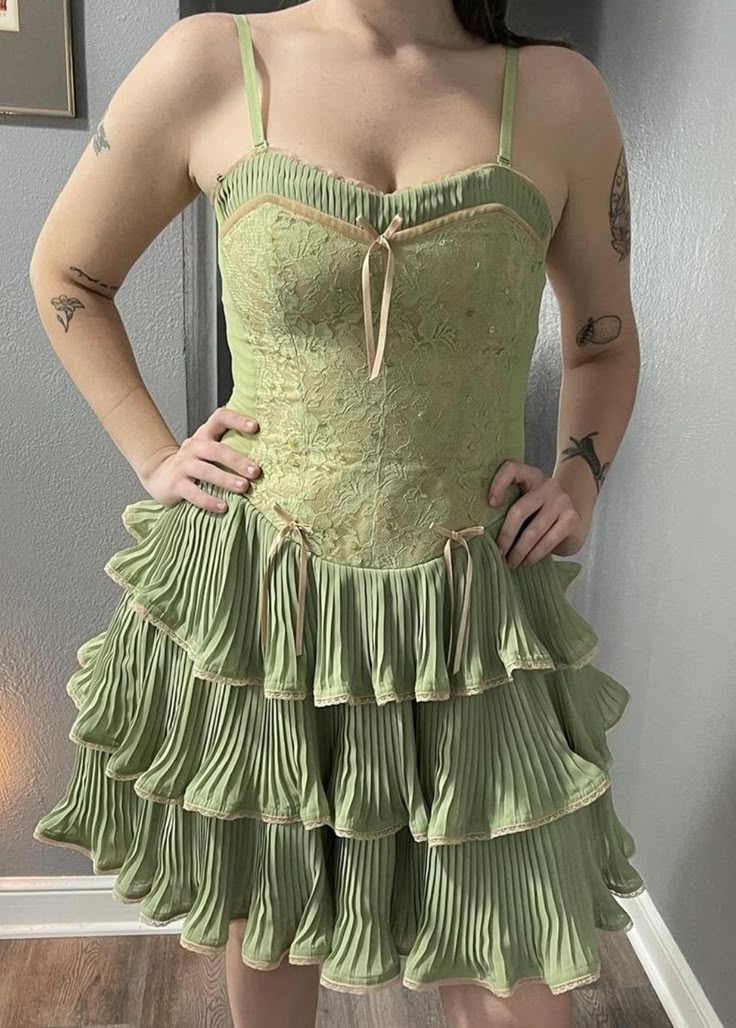 Green pink sweet spaghetti strap layered short lace tulle homecoming dress prom dress evening dress birthday party dress gh3463