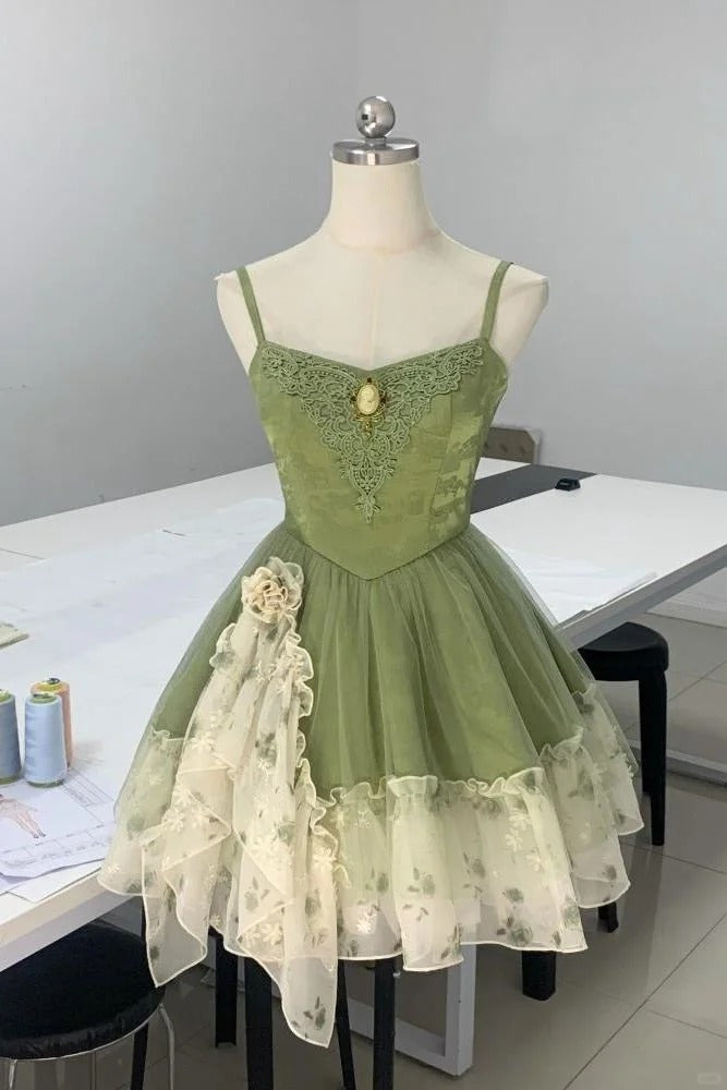 Green/Red Sweet Cute Elegant Pretty Spaghetti Strap Short Chiffon Homecoming Dress Prom Dress Evening Dress Party Dress gh4192